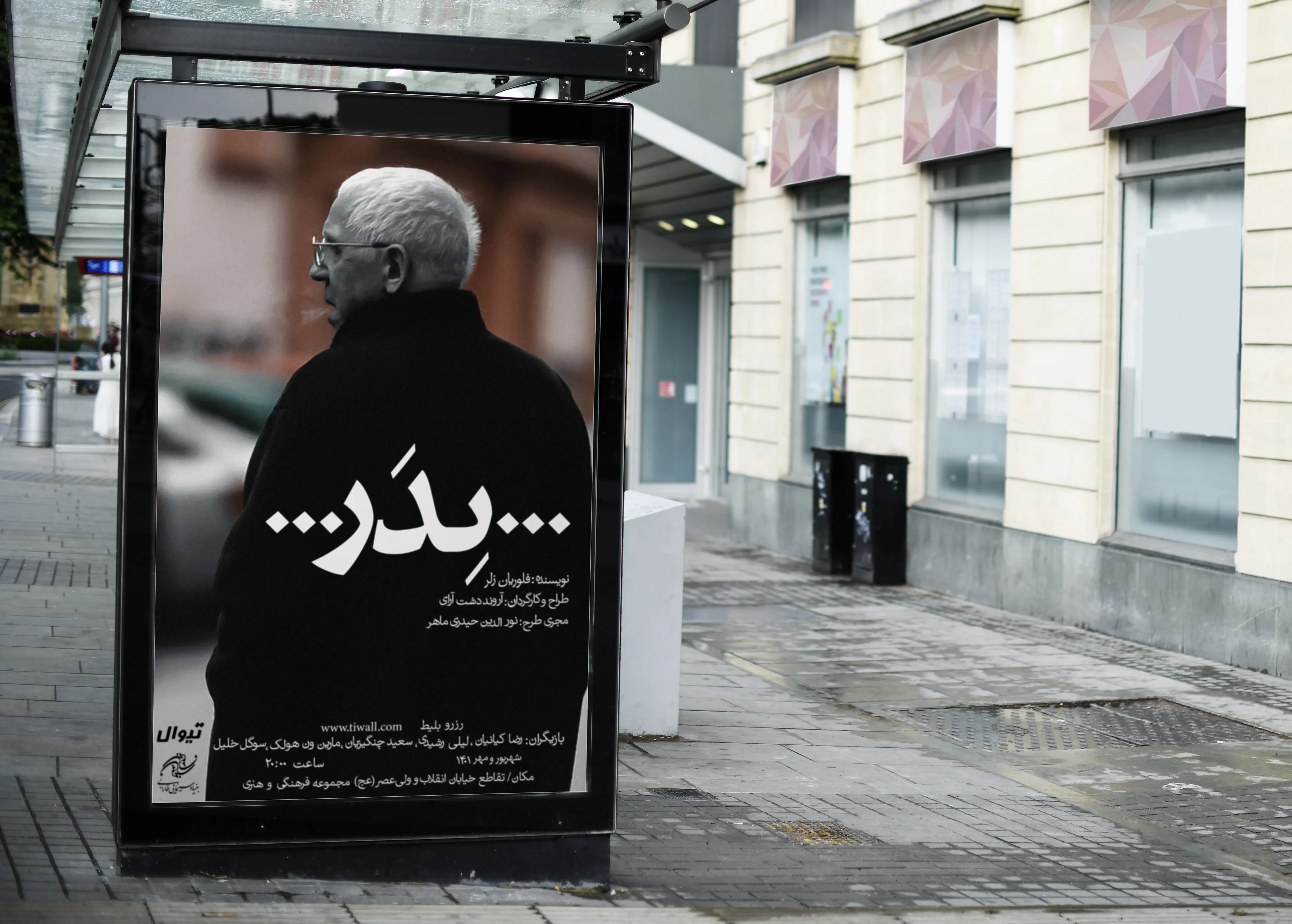 نمونه طراحی پوستر برای تئاتر "پدر" با بازی رضا کیانیان و لیلی رشیدی
