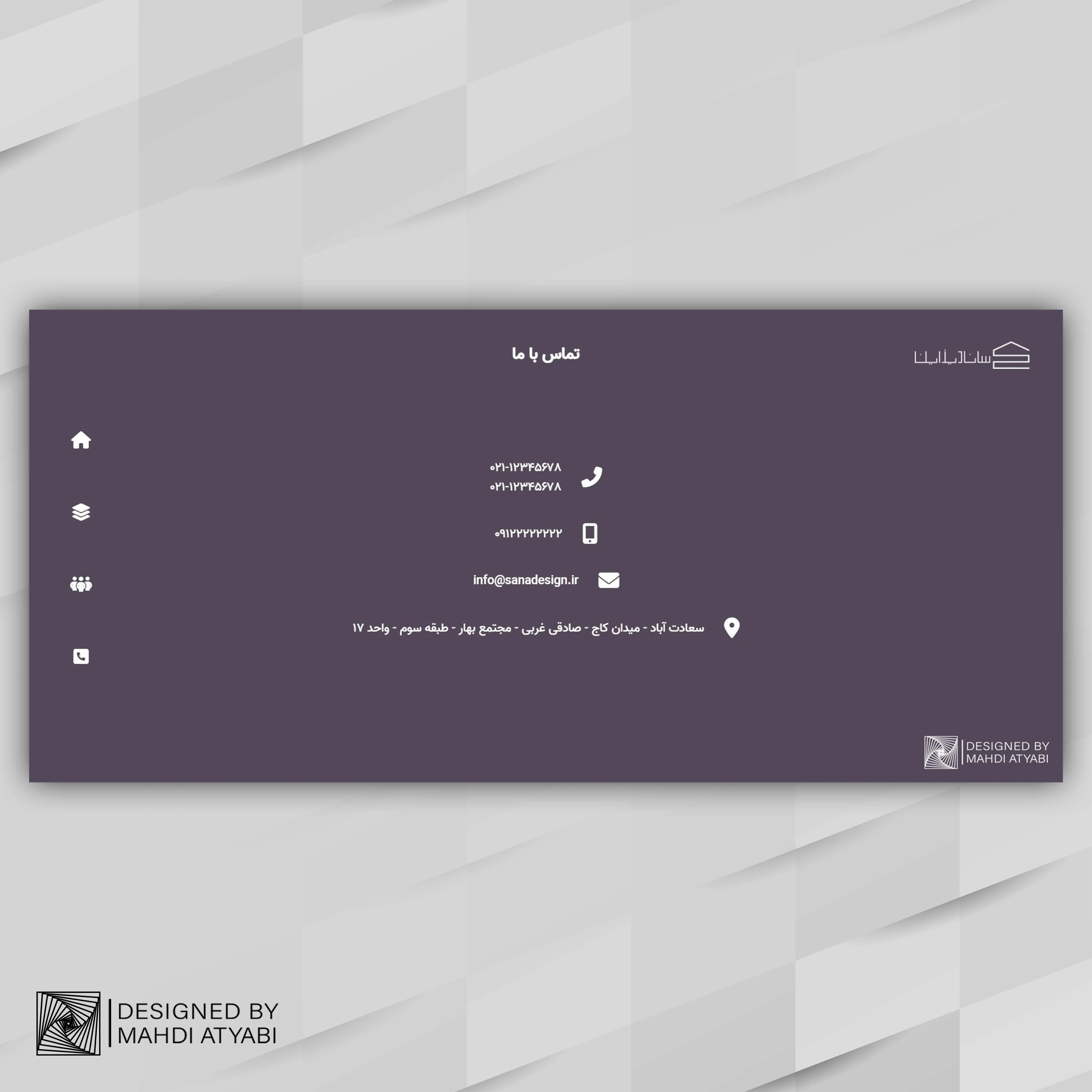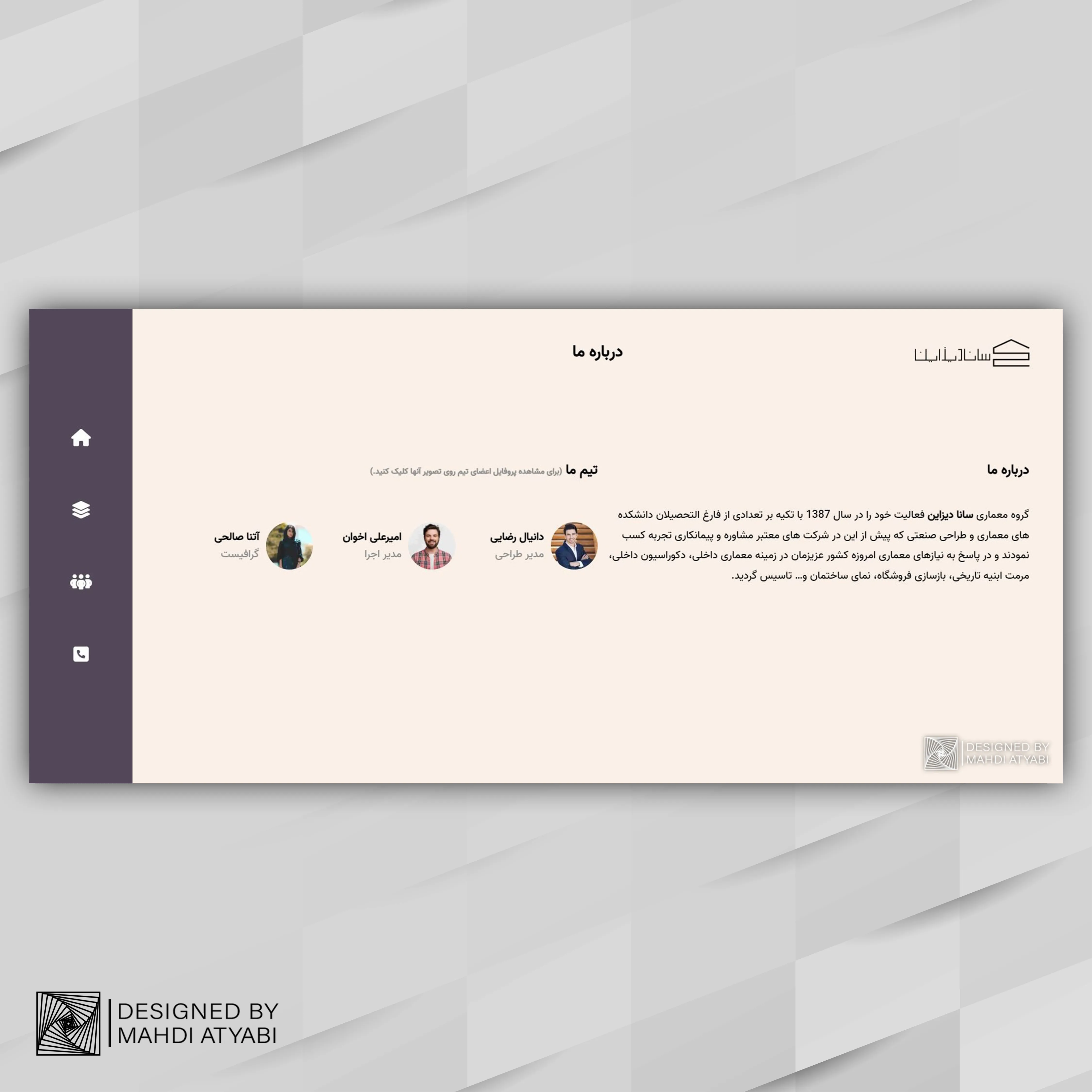 وبسایت آزمایشی طراحی شده توسط من، به نام "سانا دیزاین"، برای شرکت ارائه خدمات طراحی و اجرای دکوراسیون داخلی. • کاملا رسپانسیو و قابل نمایش در انواع Device ها در انداره های مختلف.