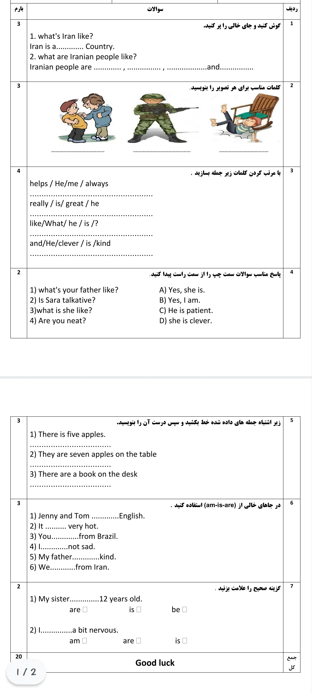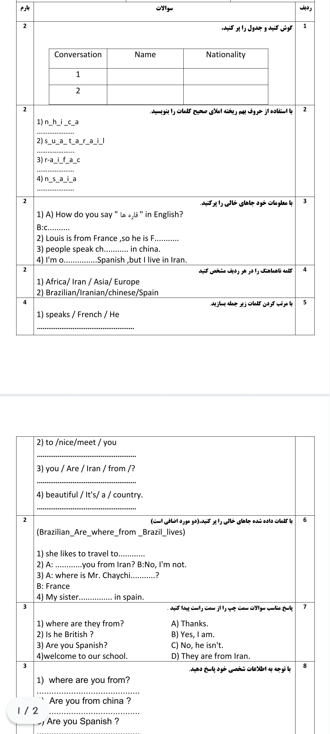 تایپ دوسری سوال زبان انگلیسی دبیرستان