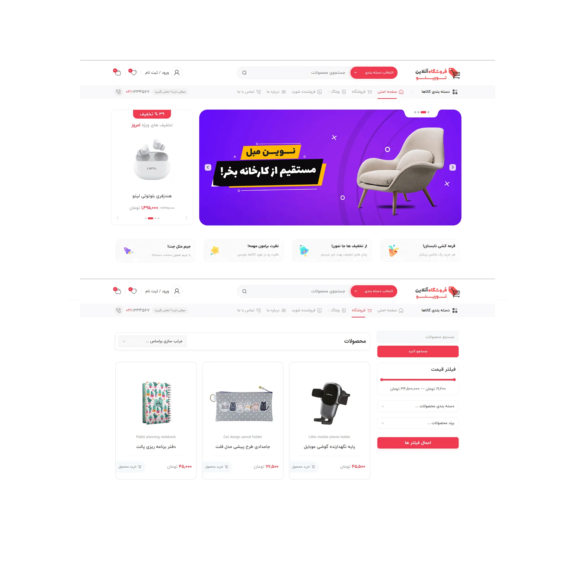 فروشگاه آنلاین تورینو طراحی شده با قالب فروشگاهی وودمات
