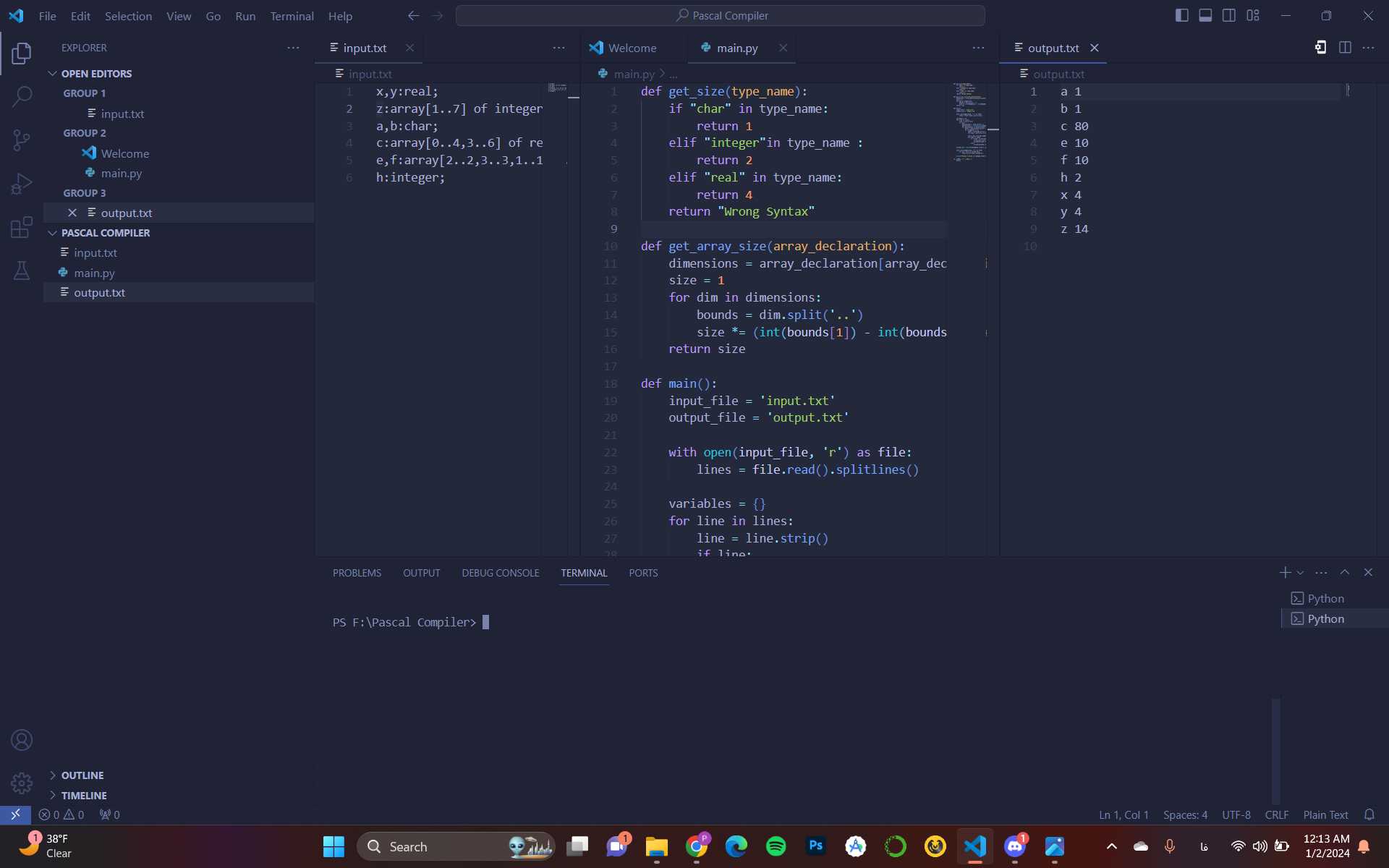 در این پروژه کد های پاسکال ساده را گرفته و سایز هر متغیر و آرایه را در خروجی نشان میدهد