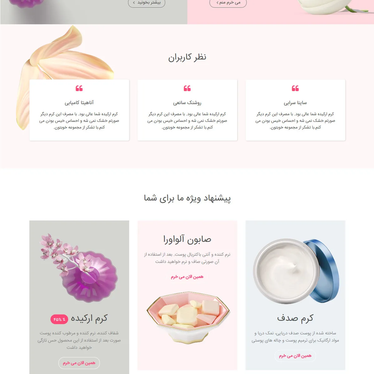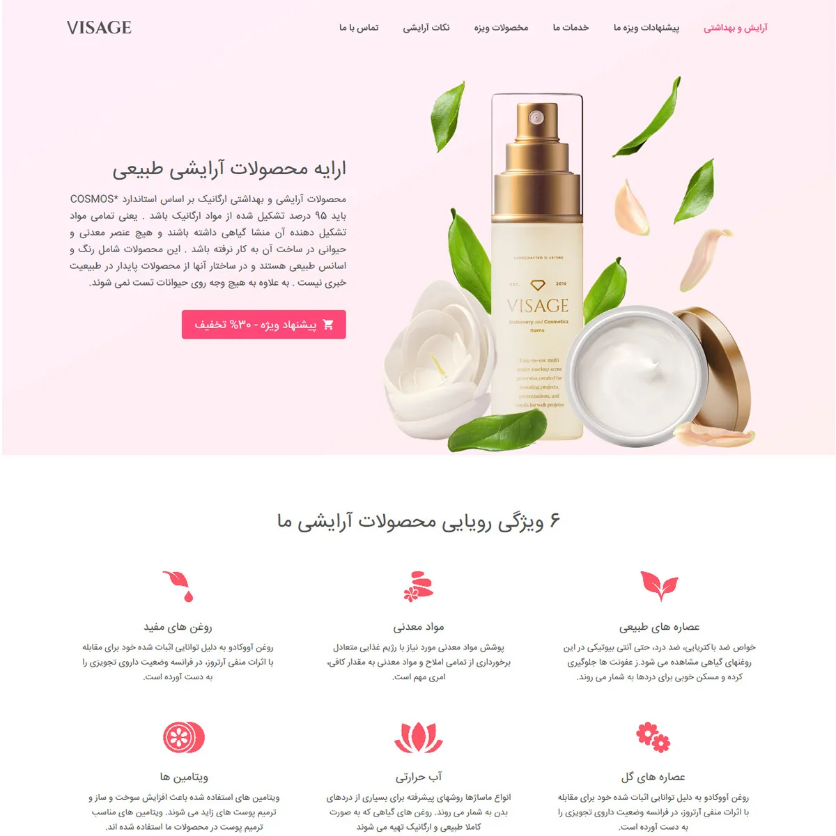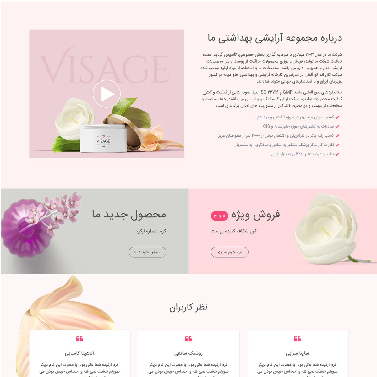 طراحی landing page شرکت محصولات ارایشی و بهداشتی