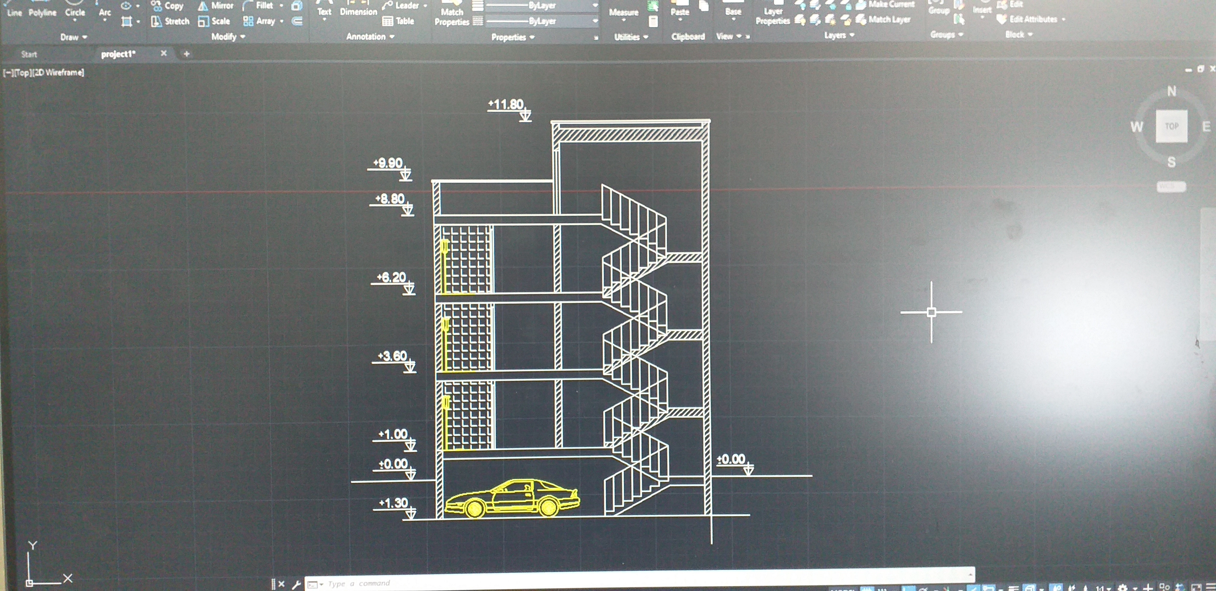 طراحی برش عرضی طبقات ساختمان ۳ طبقه به همراه خرپشته و پارکینگ