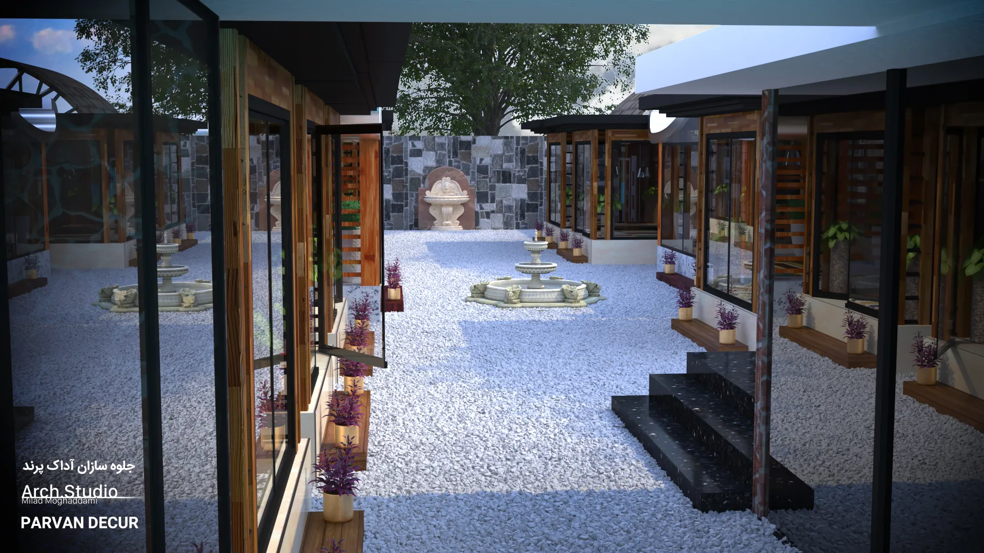 صفر تا صد مدلینگ و ساخت آلاچیق ها و فضاهای درون کار، توسط خود بنده انجام شده است.