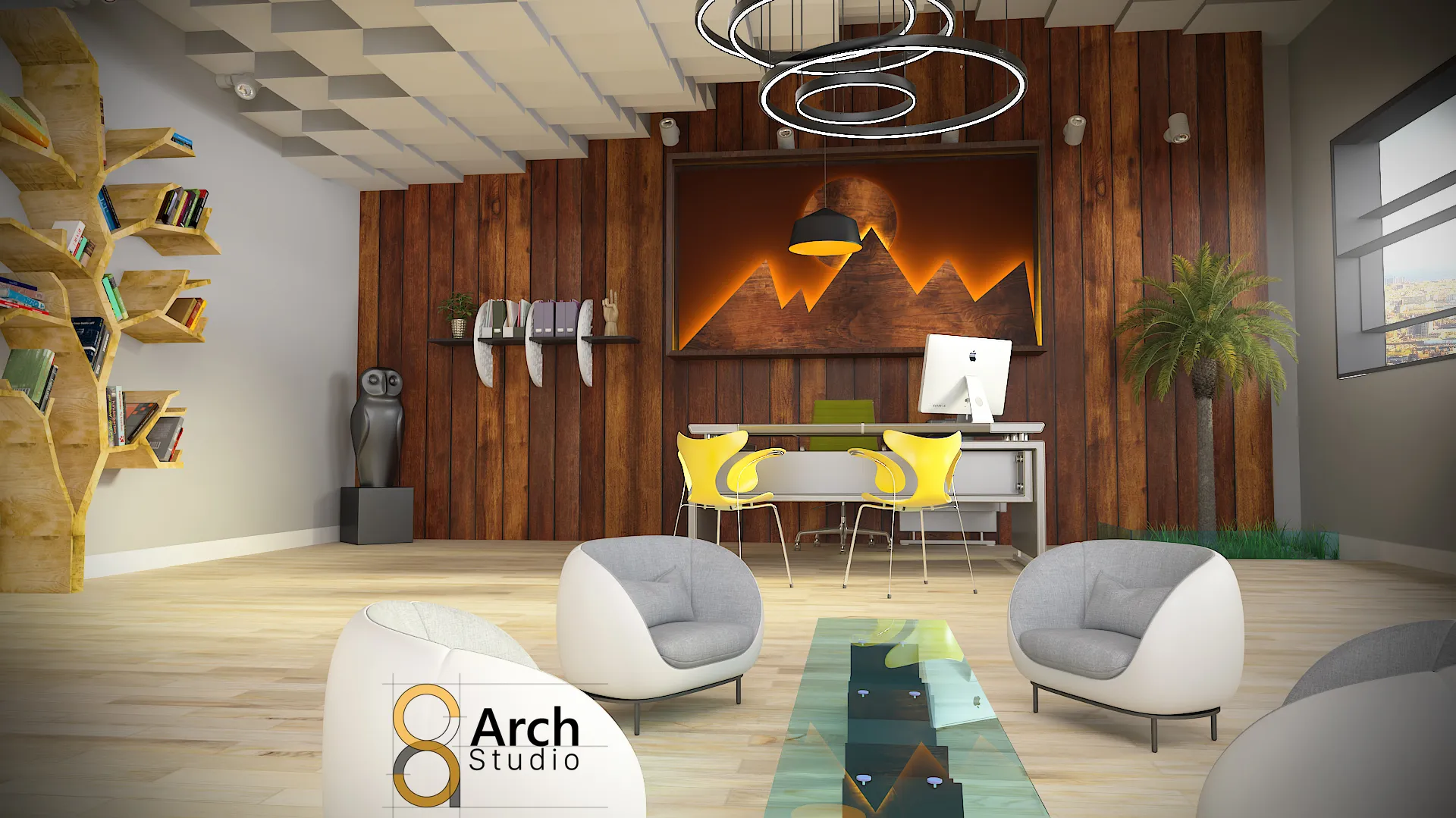 ایده پردازی، طراحی، مدلینگ و در نهایت رندر یک دفتر با محوریت دفتر سرمایه گذاری در بورس.