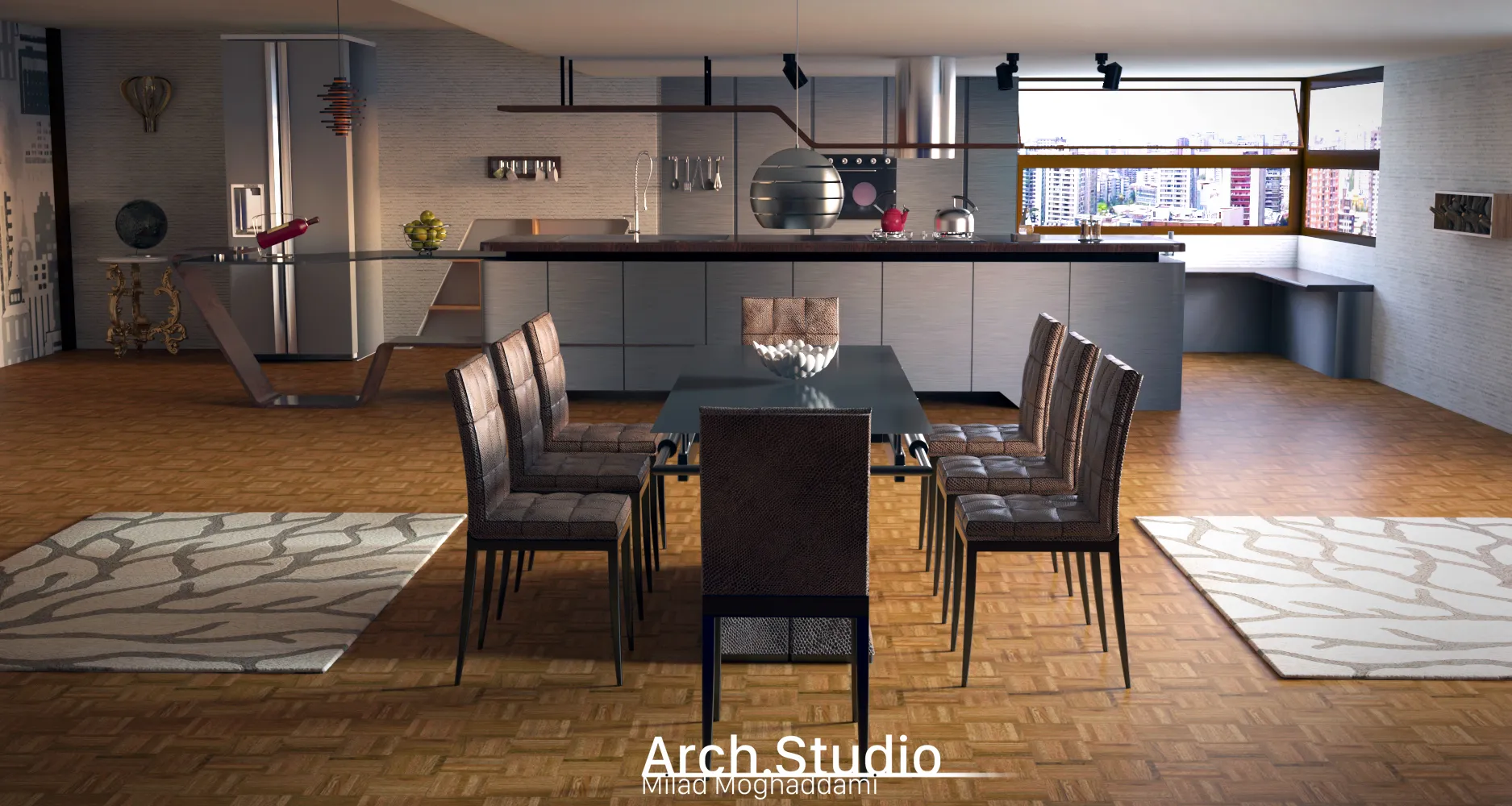 آشپزخانه ای با رویکرد مدرنیته، که طراحی ، مدلینگ و رندر همه ی قسمت ها بر عهده ی خودم بوده.