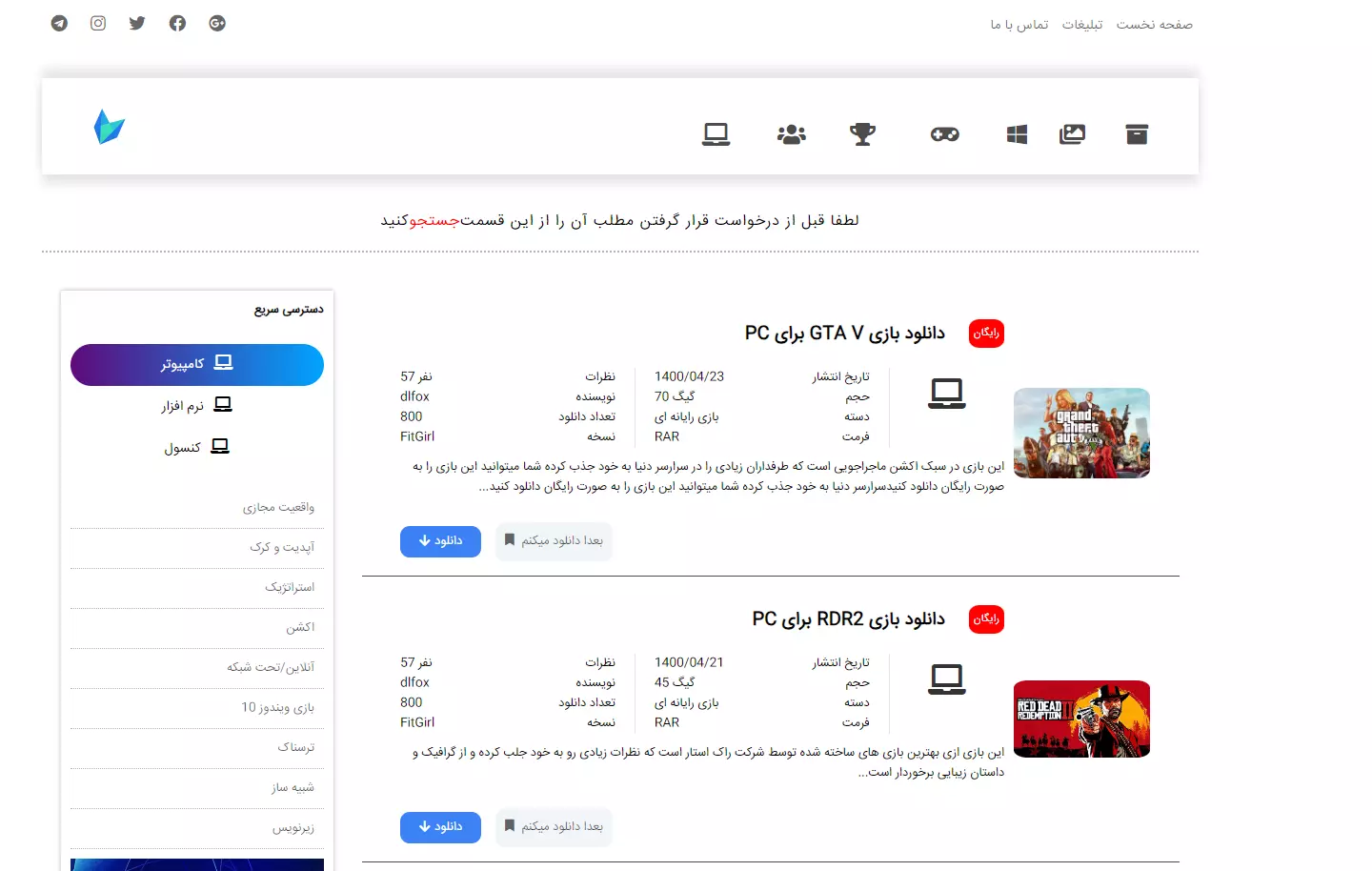 یک طراحی قالب ساده از سایت دانلود بازی و نرم افزار DLFOX