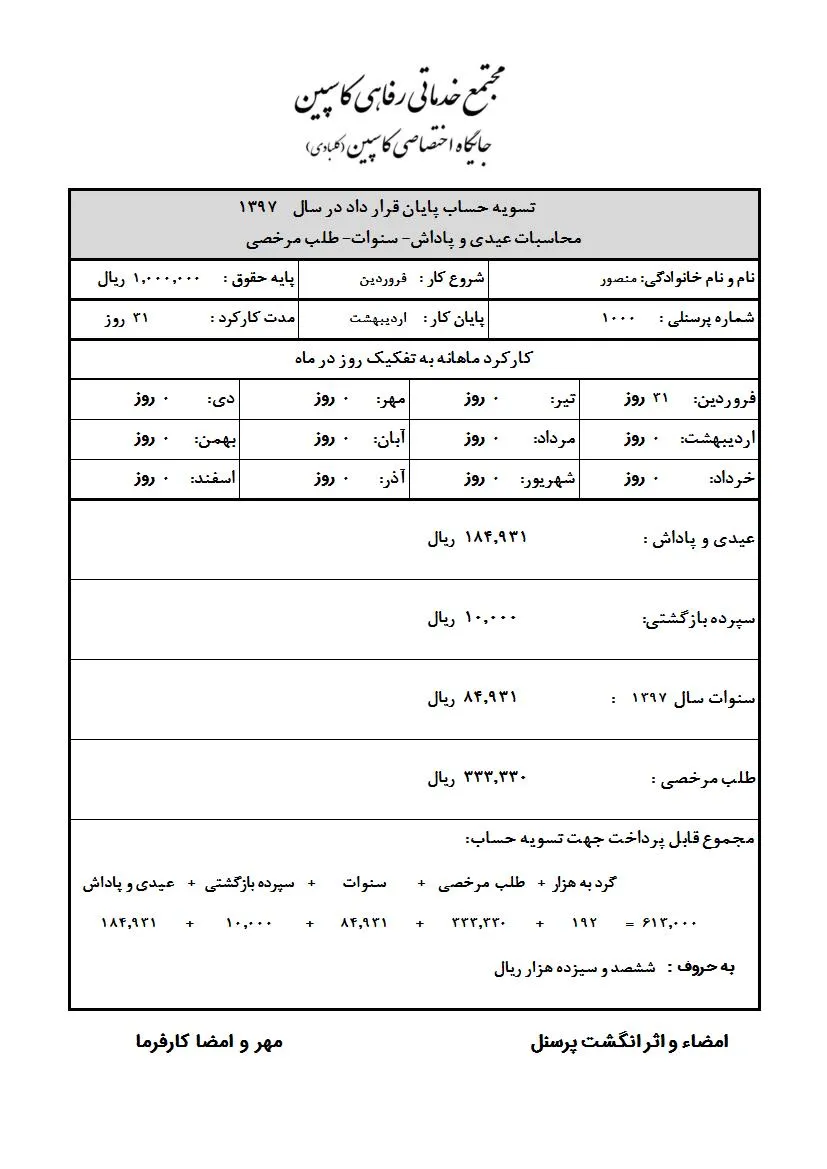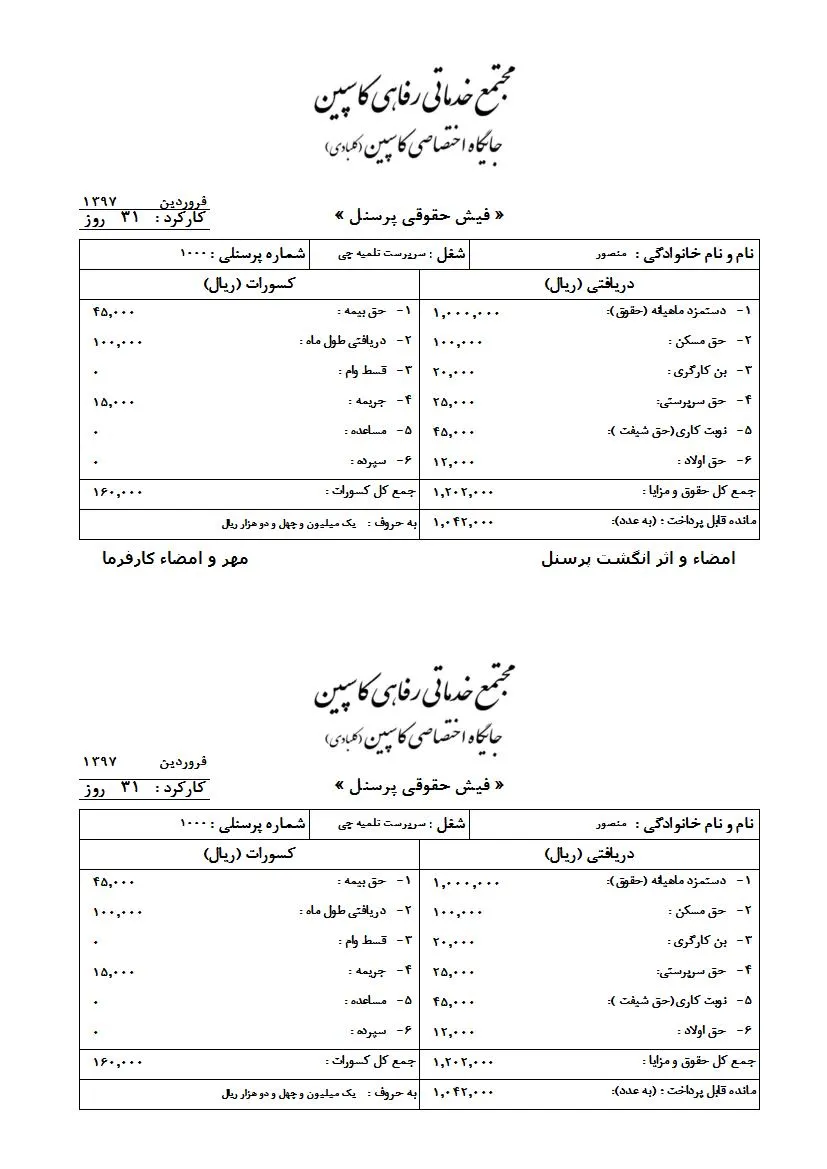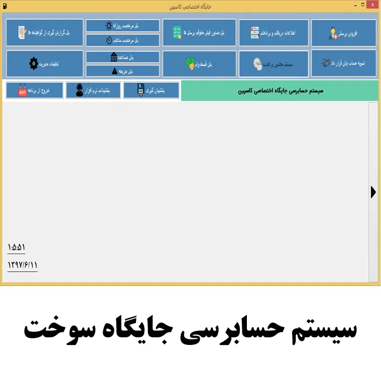 این سیستم برای جایگاه های سوخت ، با تعریف پرسنل و حقوق آنها و همچنین مرخصی های ساعتی، روزانه ، جریمه، مساعده ؛ بصورت اتوماتیک صدور فیش میکند برای هر ماه؛ تمام امکانات لازمه برای این سیستم بصورت اتواماتیک طراحی گردیده