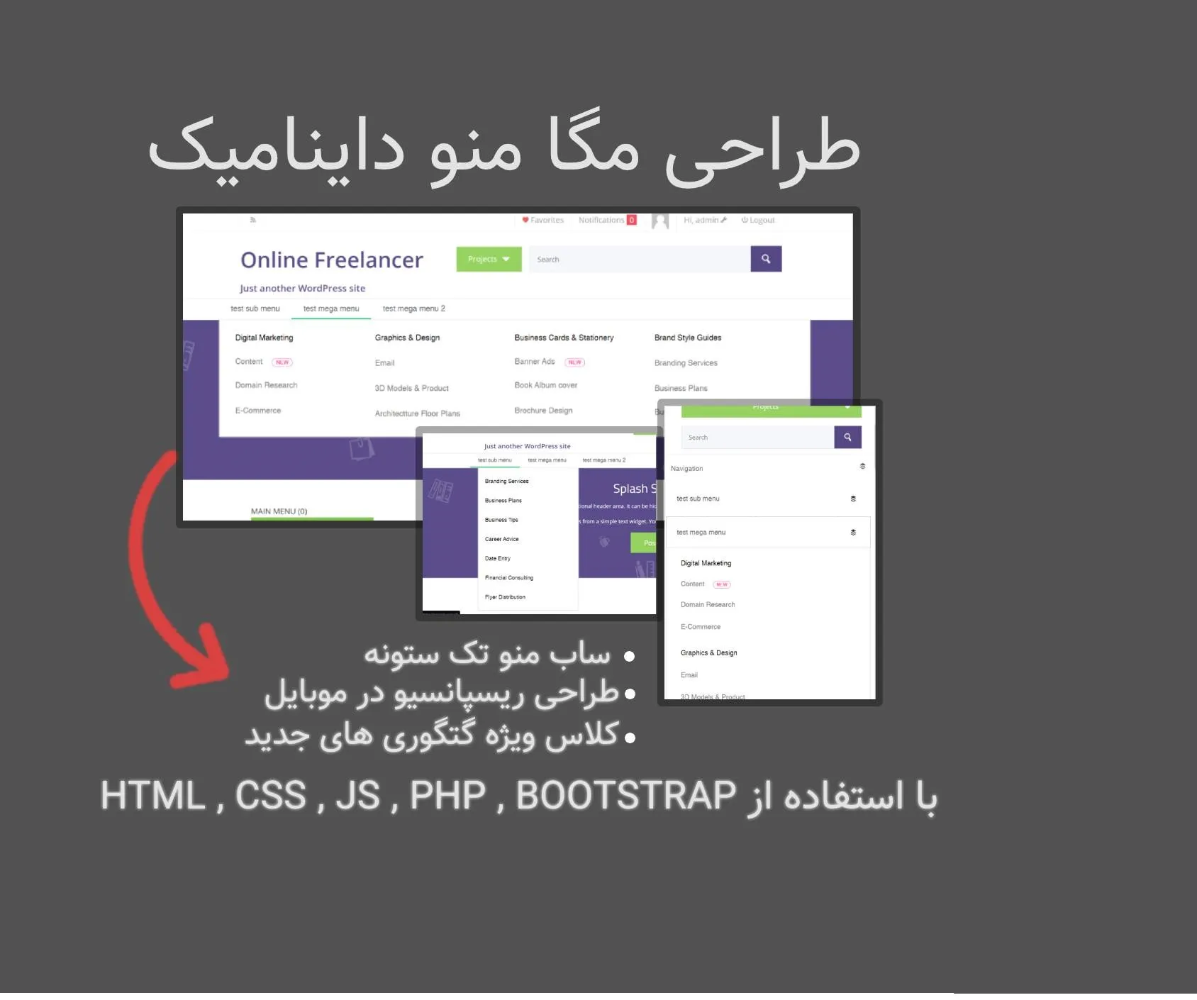 ساخت مگا منو با استفاده از کد های php جایگذاری و نمایش بهینه با css , html استفاده از بوت استرپ برای ریپانسیو کردن