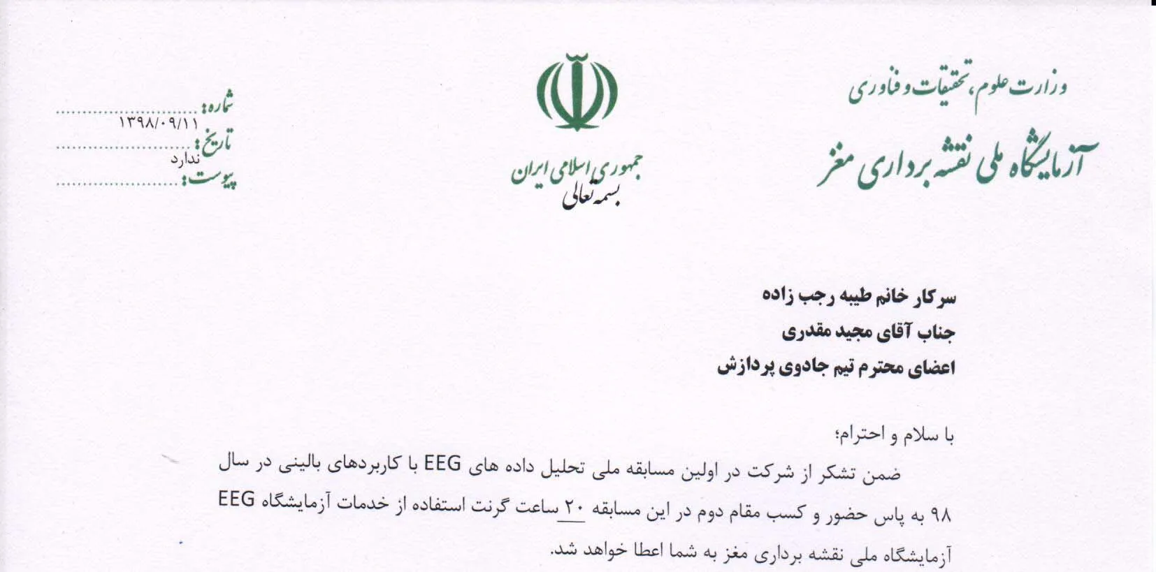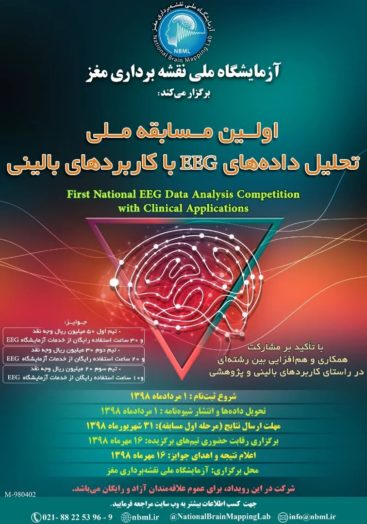 این برنامه با استفاده از EEGLAB، Python، Deep Learning برای "اولین مسابقه ملی تحلیل داده های EEG با کاربردهای بالینی" نوشته شد. با این برنامه توانستیم رتبه دوم این مسابقه را که توسط آزمایشگاه ملی نقشه برداری مغز در مهر 98 برگزار گردید کسب نماییم.