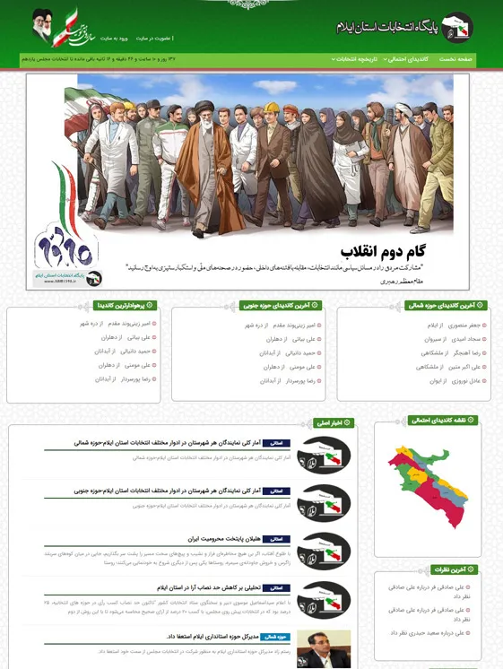 وب سایت پایگاه انتحابات استان ایلام با سیستم لاراول نوشته شده است که دارای نسخه موبایل اختصاصی نیز می باشد . این سایت شامل بخش های مختلف اختصاصی بوده که به صورت اختصاصی برای این پایگاه طراحی گردیده است .