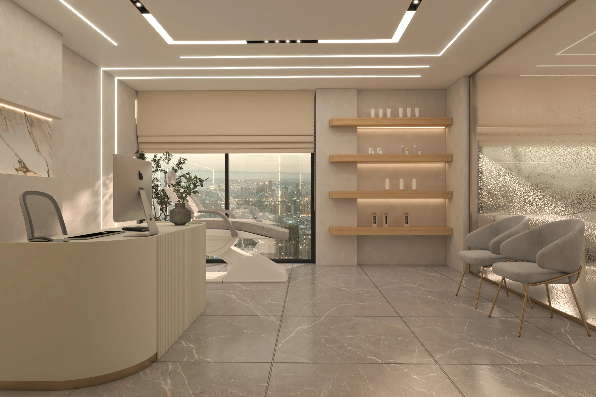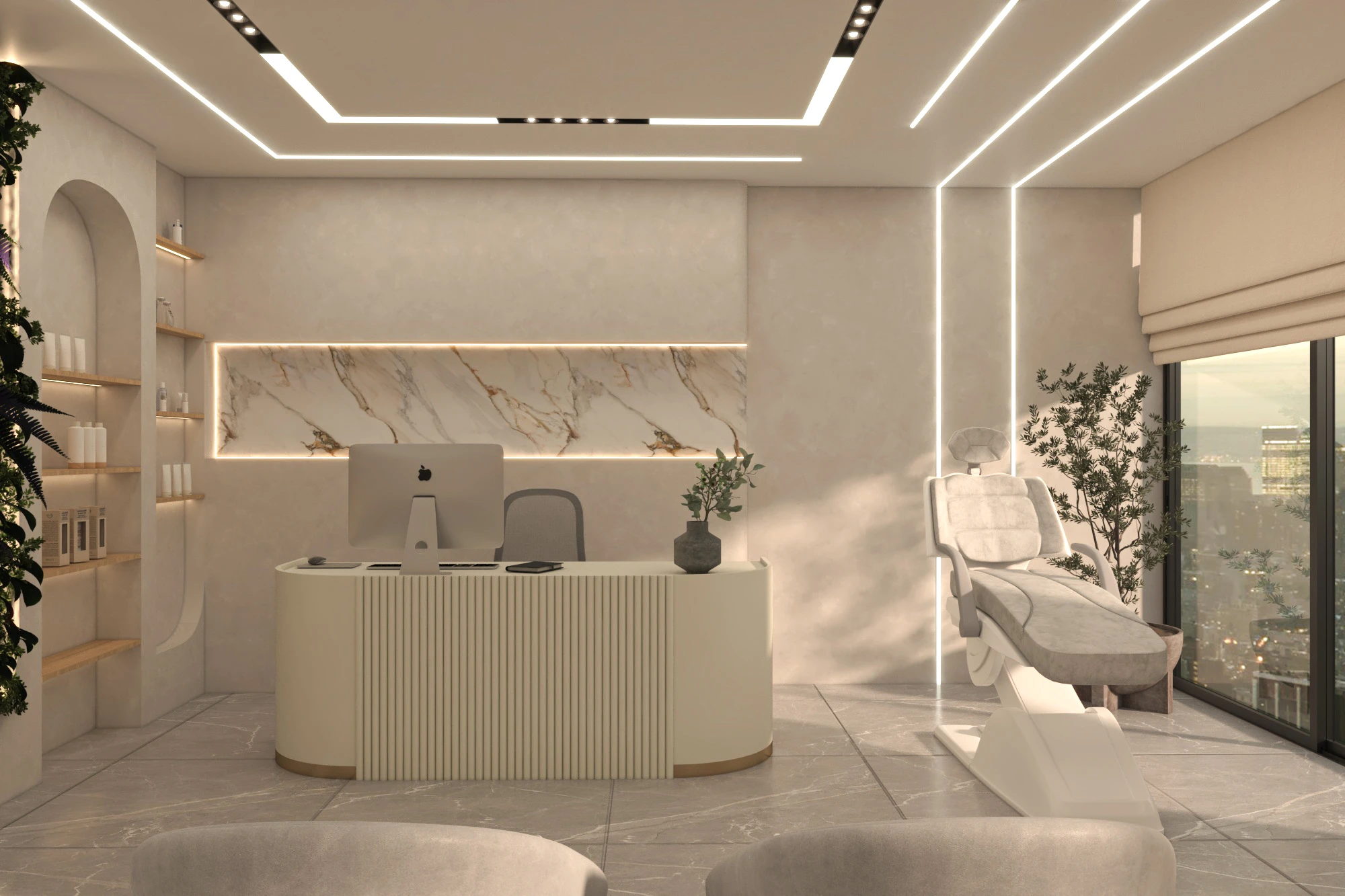 طراحی کلینیک زیبایی واقه در شیراز با متراژ حدودا 100 متر مربع. در این پرژوه تفکیک فضاهای مورد نیاز کارفرما انجام شد، همچنین طراحی سه بعدی مطابق سلیقه کارفرما و نظر بنده انجام شده.