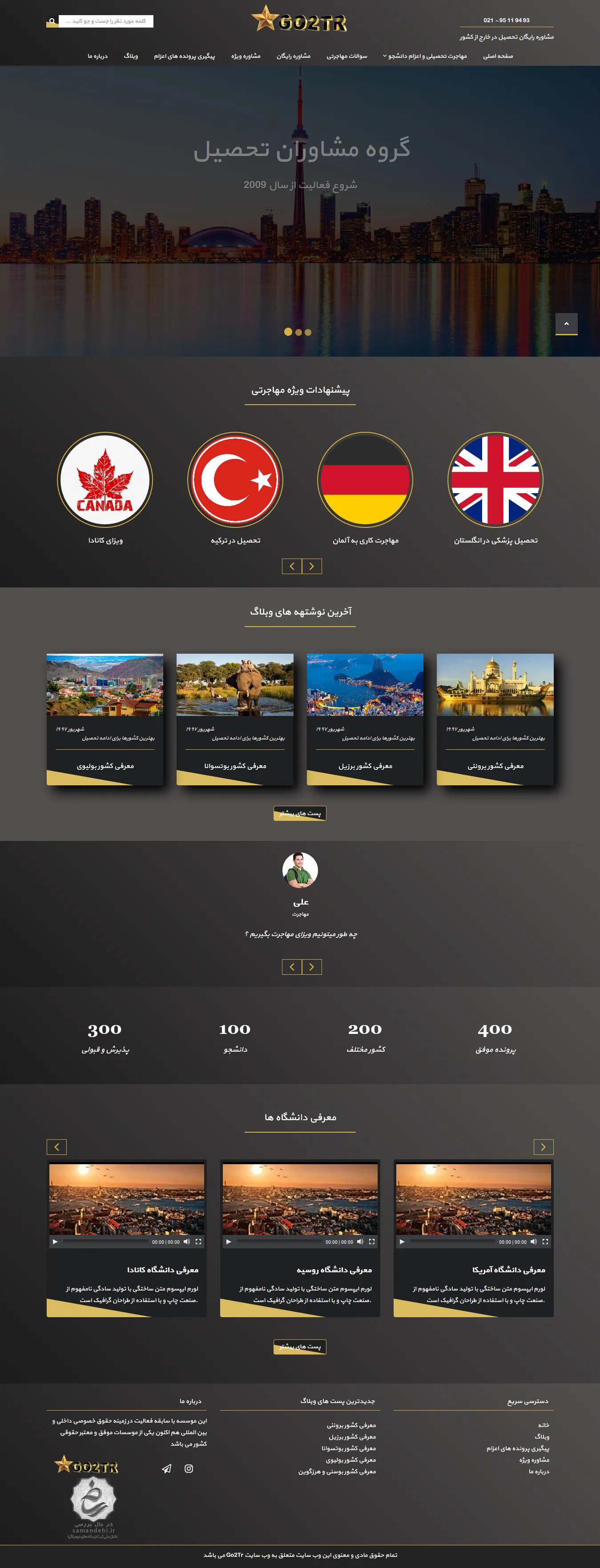 وب سایتی مربوط به امور تحصیلی ، دانشجیی و مهاجرت به کشورهای مختلف . UI و طراحی فرانت این وب سایت توسط بنده انجام شده