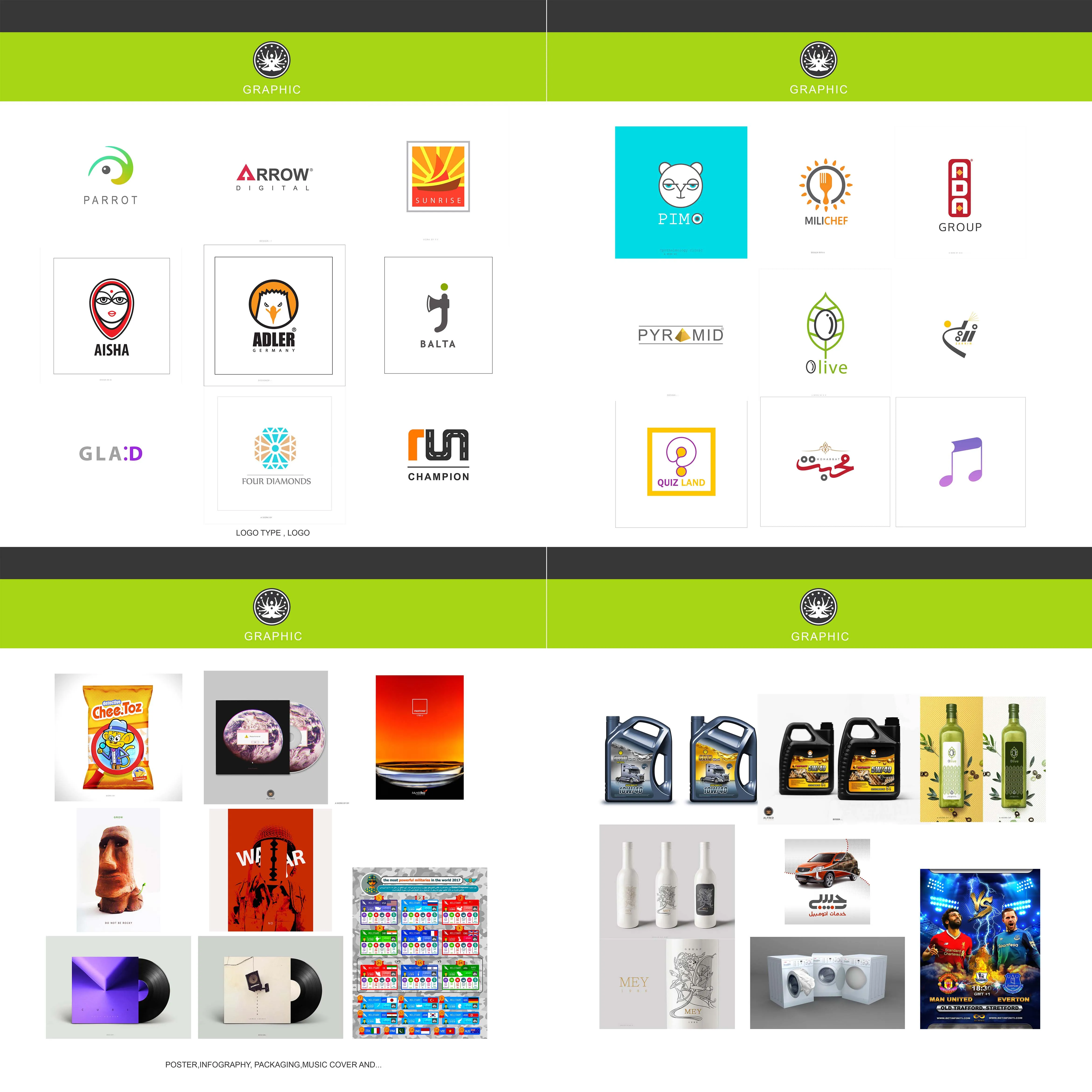 نمونه آثار گرافیک ،نظیر طراحی لوگو و لوگوتایپ ، ست اداری، پوستر، بسته بندی و...