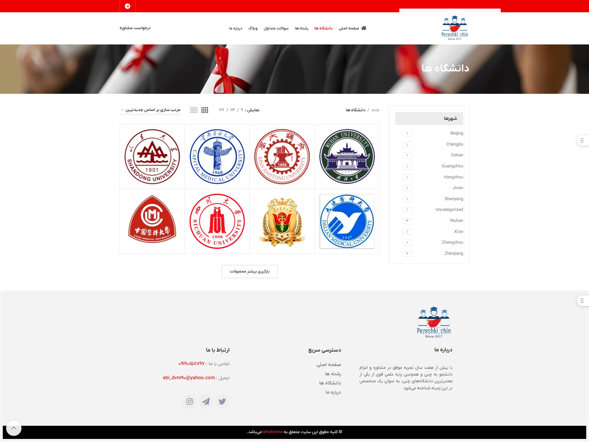 سایت مهاجرتی با داشتن قابلیت اضافه کردن تمام دانشگاه ها و رشته ها و قابلیت جستجوی پیشرفته و طراحی اختصاصی