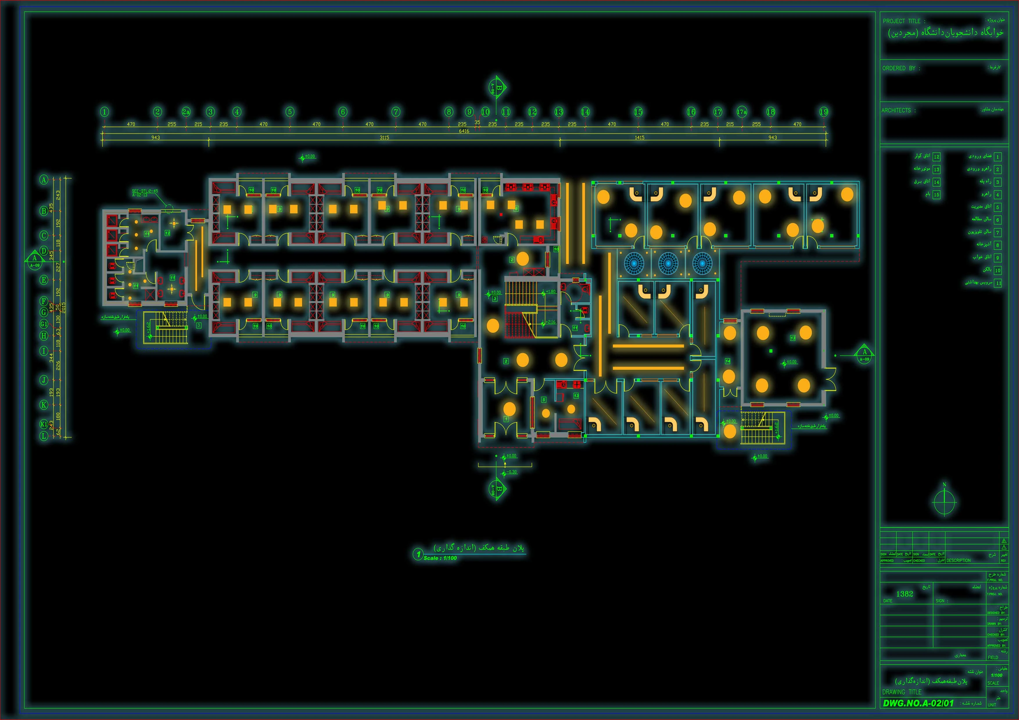 طراحی و ترسیم خوابگاه دانشجویی به همراه بازارچه