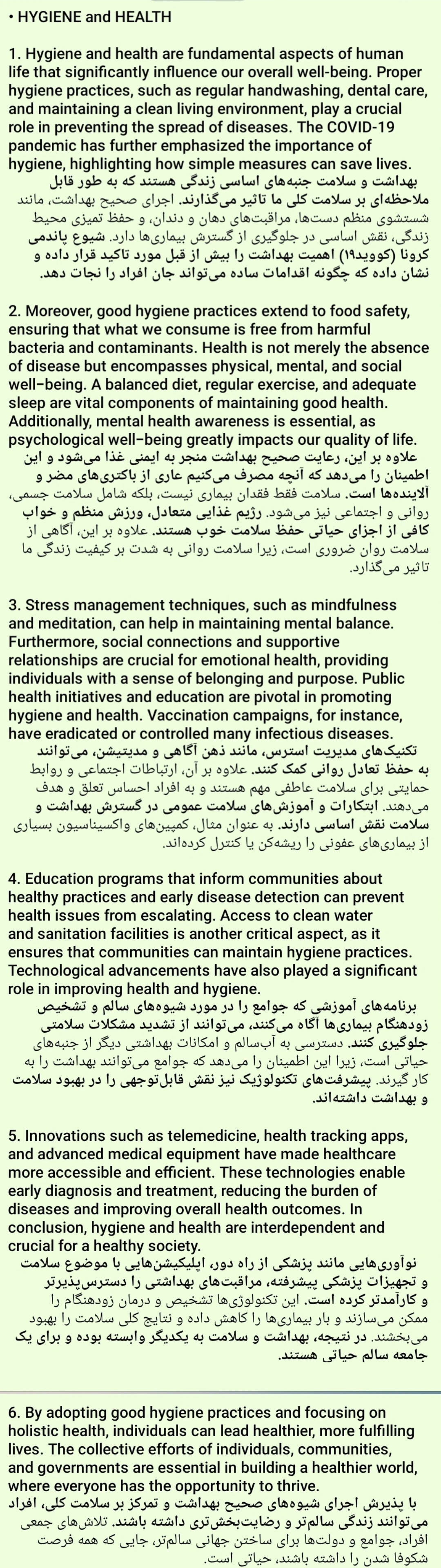 توی عکس ترجمه از یک مقاله کوتاه در مورد بهداشت و سلامت انجام شده. خیلی روان و مفهومی