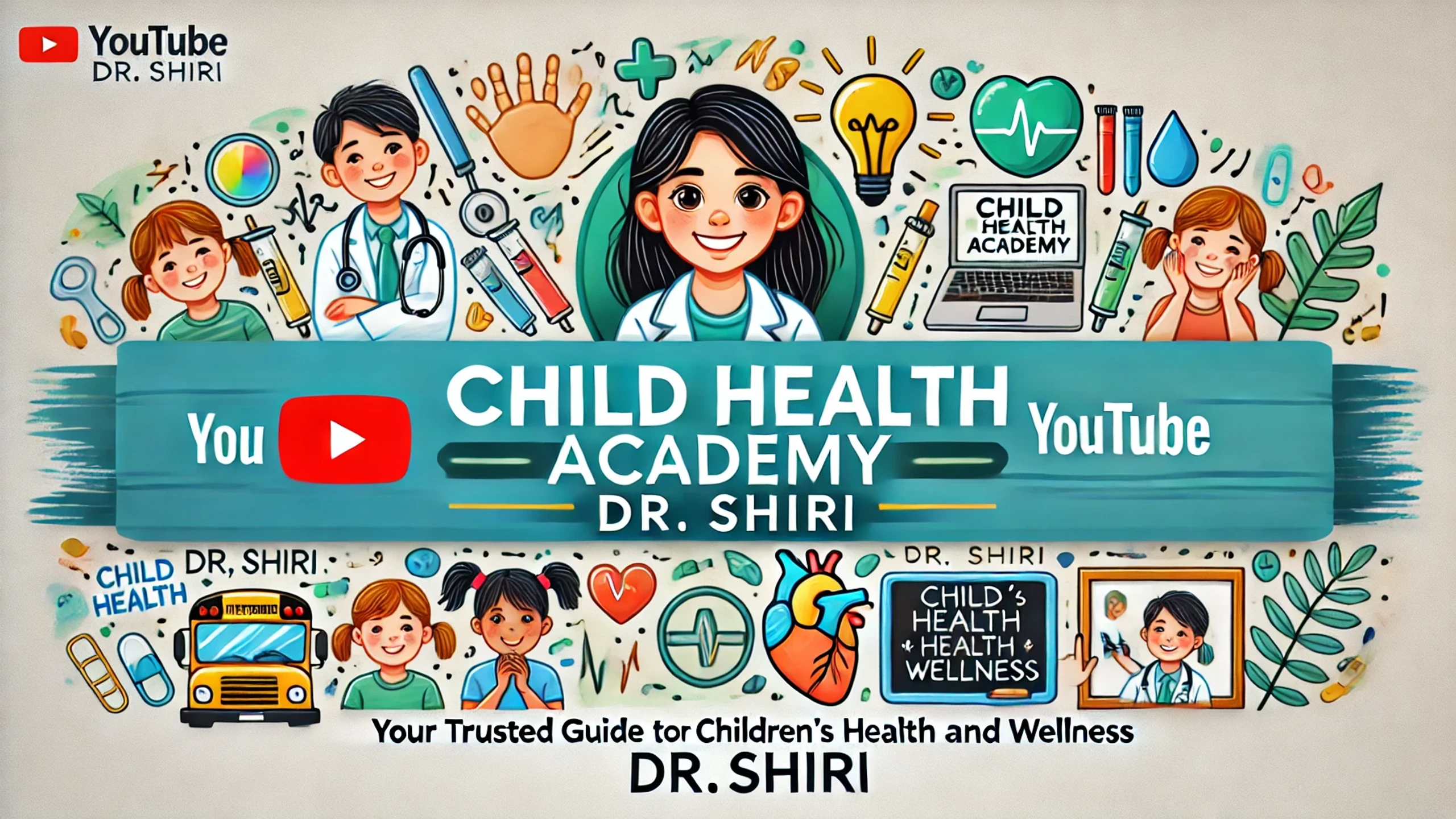 نمونه طراحی کاور برای کانال یوتیوب با محتوای سلامت کودکان با استفاده از فناوری هوش مصنوعی