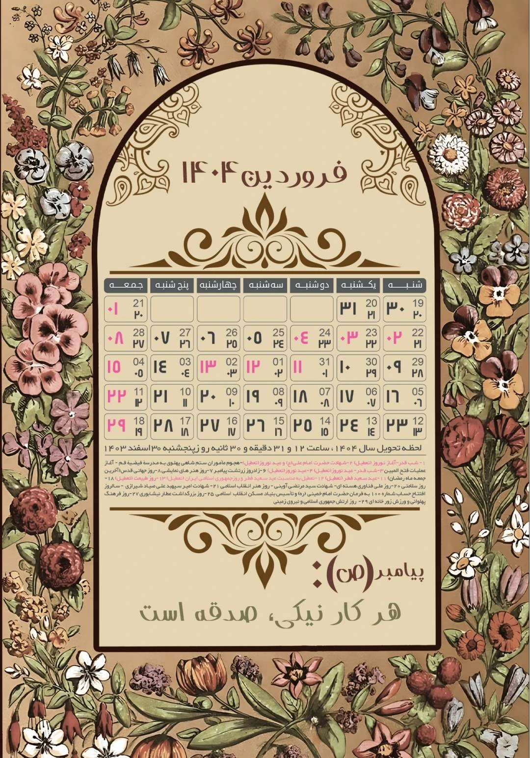نمونه کار تقویم