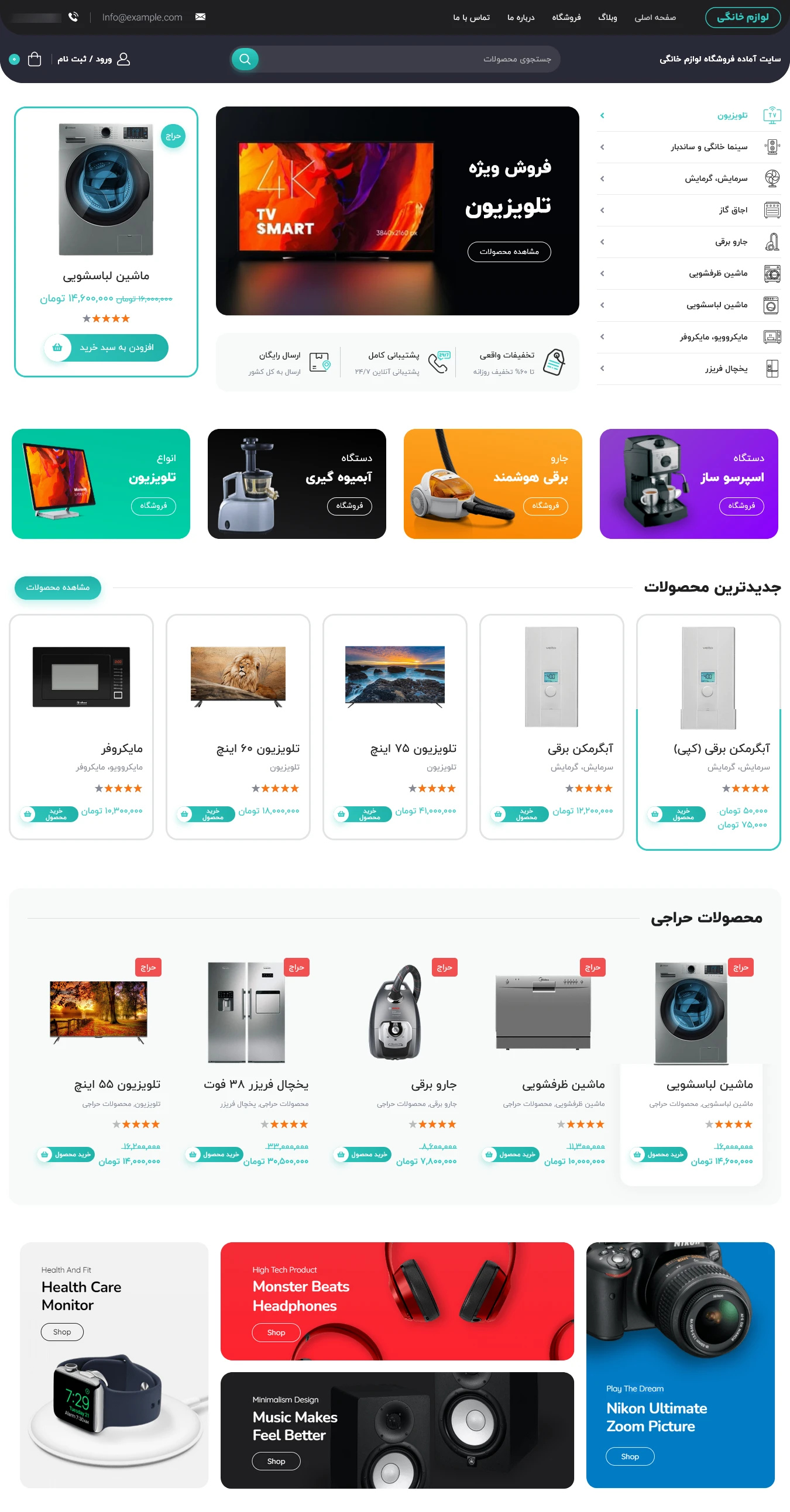 نمونه سایت فروشگاه محصولات دیجیتال، در دوران فناوری و ارتباطات امروزی، دسترسی به محصولات مختلف به وسیله فروشگاههای آنلاین به سرعت افزایش یافته است. اگر به دنبال ایجاد یک فروشگاه آنلاین در زمینه اکسسوریهای کامپیوتر، لپتاپ، تبلت و موبایل و… هستید، این سایت میتواند به شما کمک کند