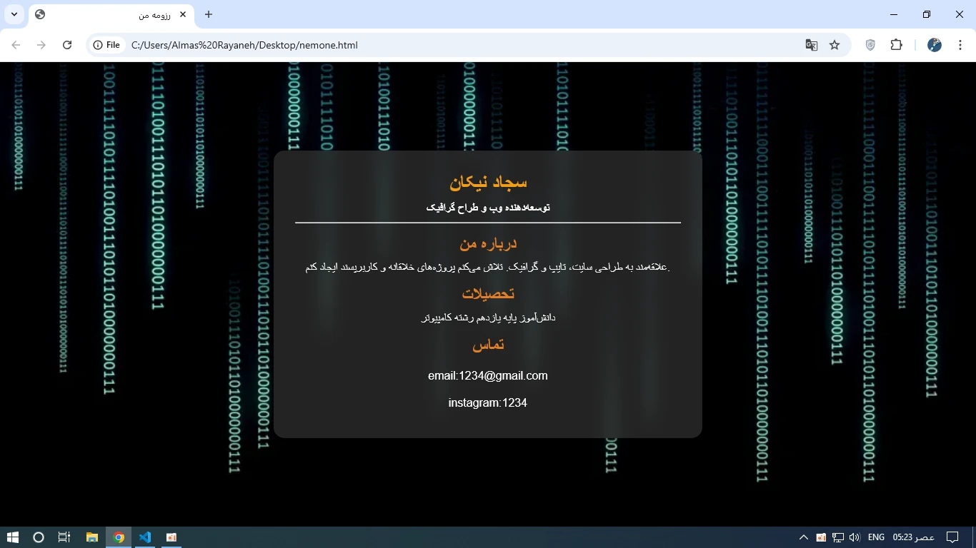 طراحی رزومه خودم با استفاده از زبان html , css که یک نمونه ساده است