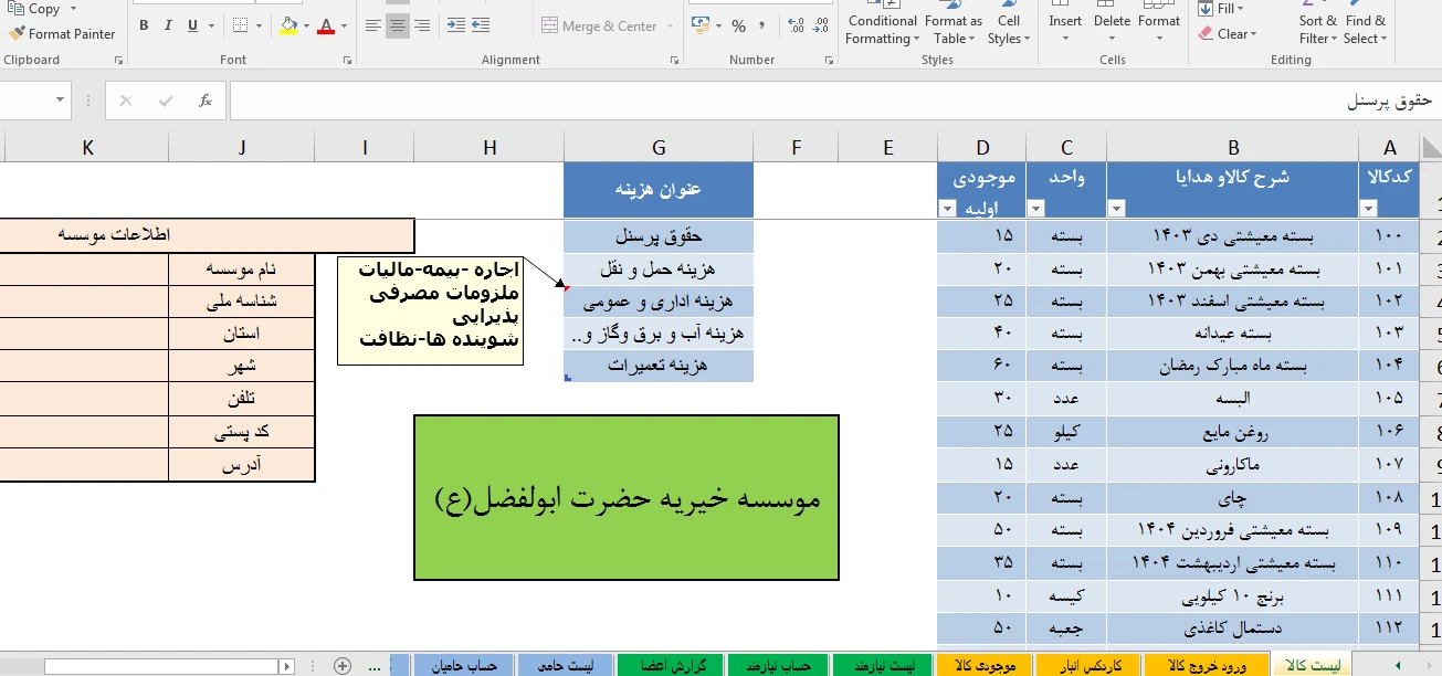 طراحی حسابداری مرکز خیریه.شامل :کاردکس انبار -موجودی کالا -لیست نیازمندان و حامیان-گردش حسابها و گزارشات آنها-فاکتورخرید و فروش-ثبت هزینه و درامد و...
