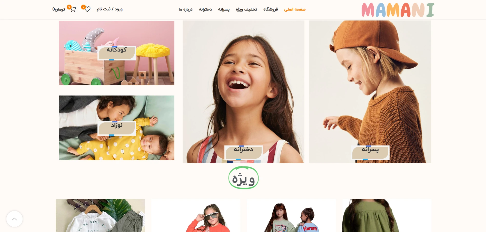 وب سایت فروشگاه پوشاک کودکان