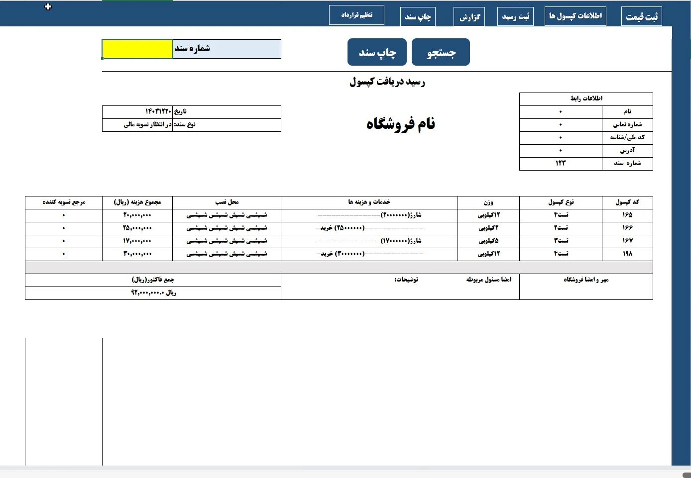 طراحی داشبورد مدیریتی تحت اکسل برای مدیریت فروش و خدمات رسانی به کپسول های آتشنشانی