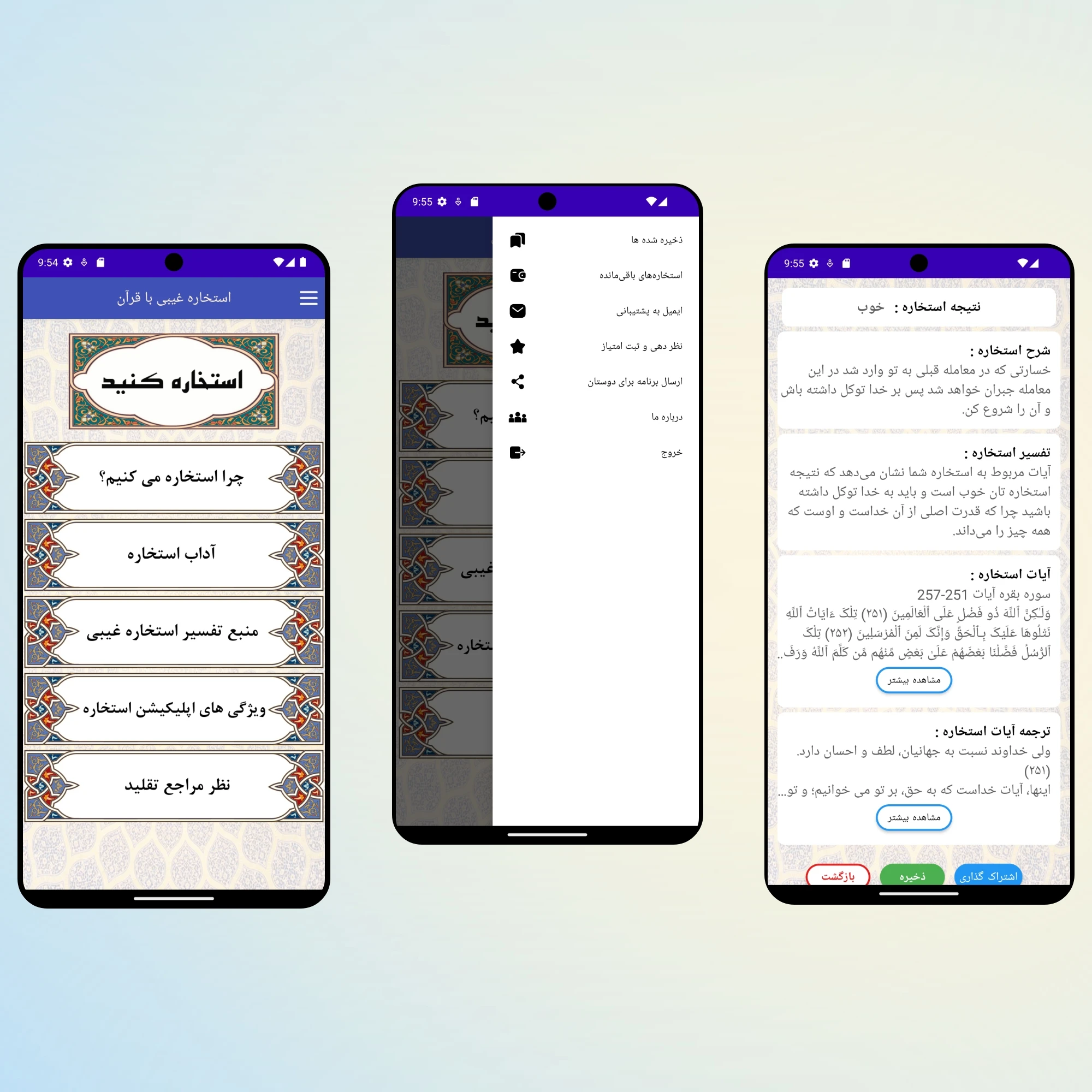 این اپلیکیشن یک ابزار ساده و سریع برای گرفتن استخاره است که با استفاده از پایگاه داده SQLite، مجموعهای از آیات و تفاسیر را در خود ذخیره دارد. کاربران میتوانند بهراحتی استخاره بگیرند، آن را ذخیره کنند و در صورت نیاز با دیگران به اشتراک بگذارند