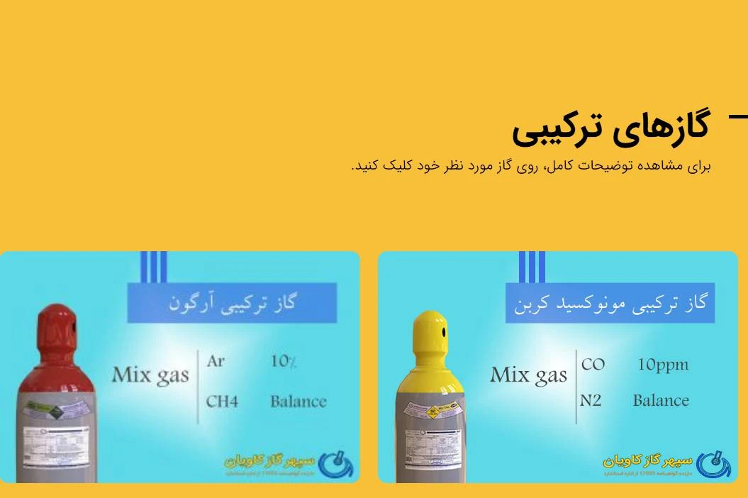 بخشی از صفحه اصلی سایت گازهای ترکیبی سپهر گاز کاویان که با المنتور و فتوشاپ طراحی شده و طبق اصول گوگل سئو شده است