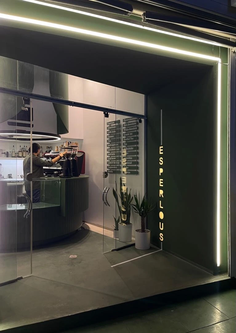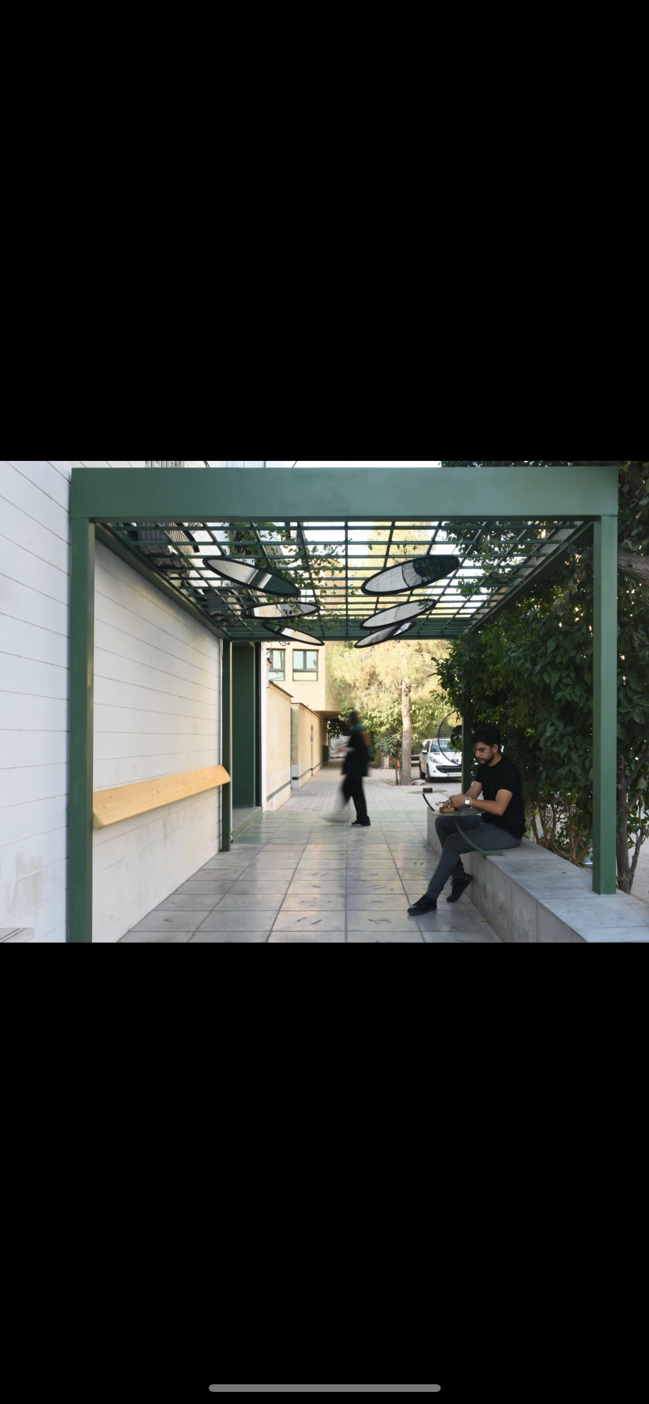 طراحی کافهی بیرونبر با متراژ ۱۵ متر مربع، طبق درخواست کارفرما باید در کوتاهترین زمان ممکن و با حداقل بودجه انجام میشد. در این پروژه با چالشهایی مانند محدودیت فضا، کمبود زمان و بودجه مواجه بودیم. در نهایت، ایدهی ما استفاده از ورودی با زاویه دید عابر پیاده، رنگآمیزی یکدست در طراحی و طراحی خلاقانهی کانتر بود. در طراحی این کافه، از یک سایهبان سازهای استفاده شد تا گیاهان رونده روی آن رشد کنند و همزمان با ایجاد سایه بیشتر، آسایش کاربران را فراهم کنند. همچنین در سقف سایهبان، از آینههایی برای افزایش جذابیت و انعکاس فضا استفاده شد.