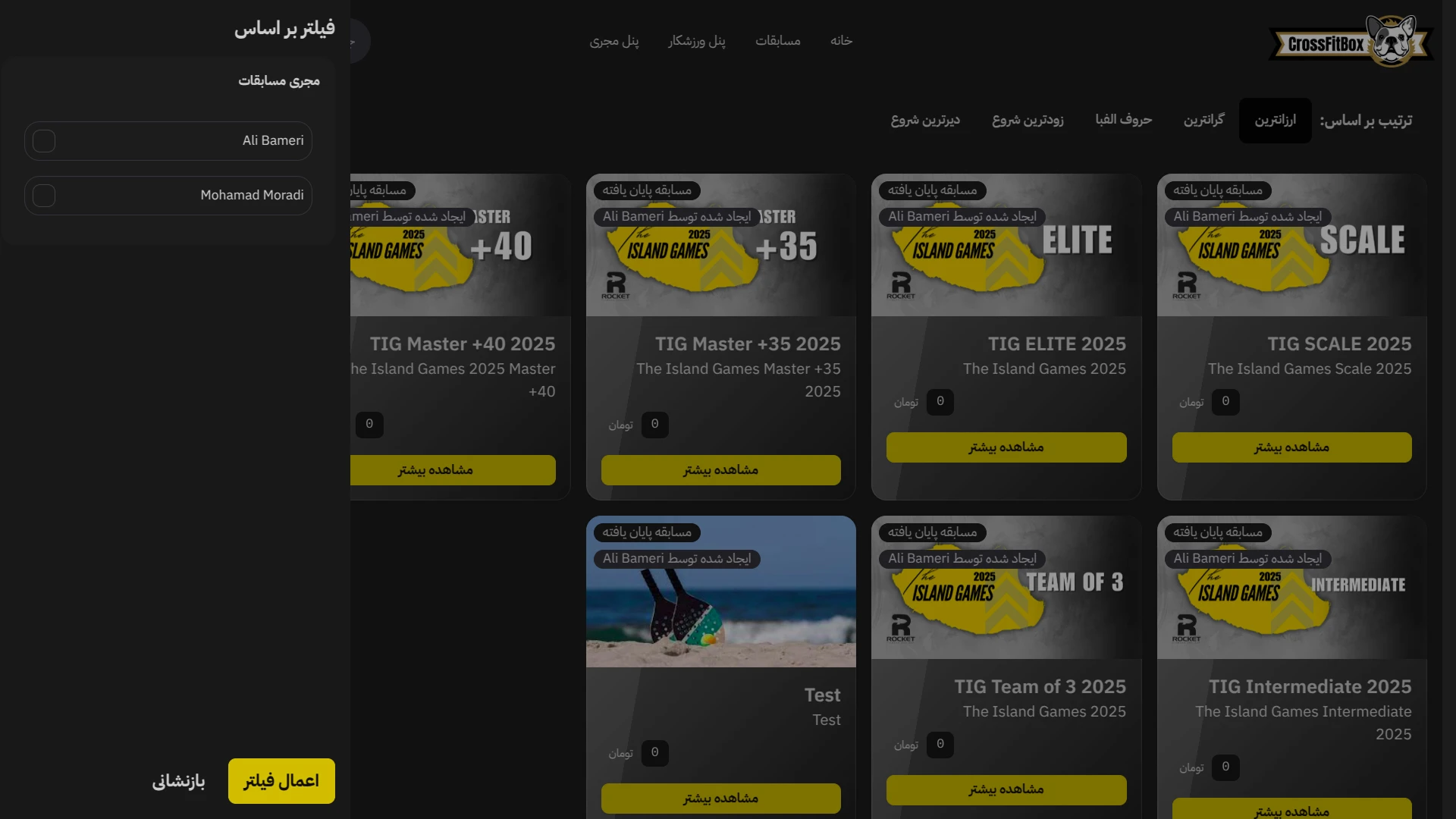 طراحی پنل ثبت نام مسابقات کراس فیت. با قابلیت خرید و پرداخت آنلاین به جهت ثبت نام
