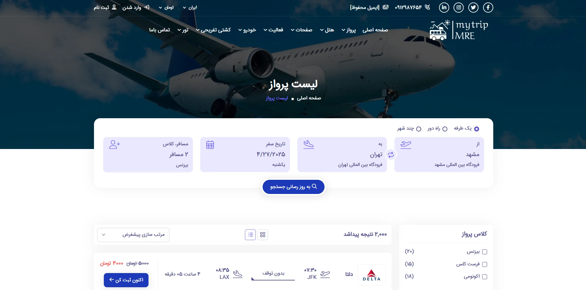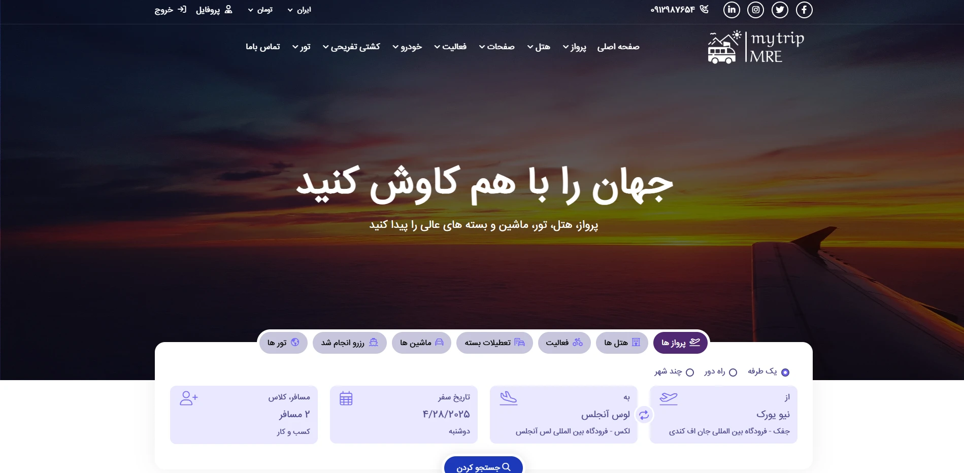 وبسایت جامع رزرو پرواز، هتل و خدمات سفر