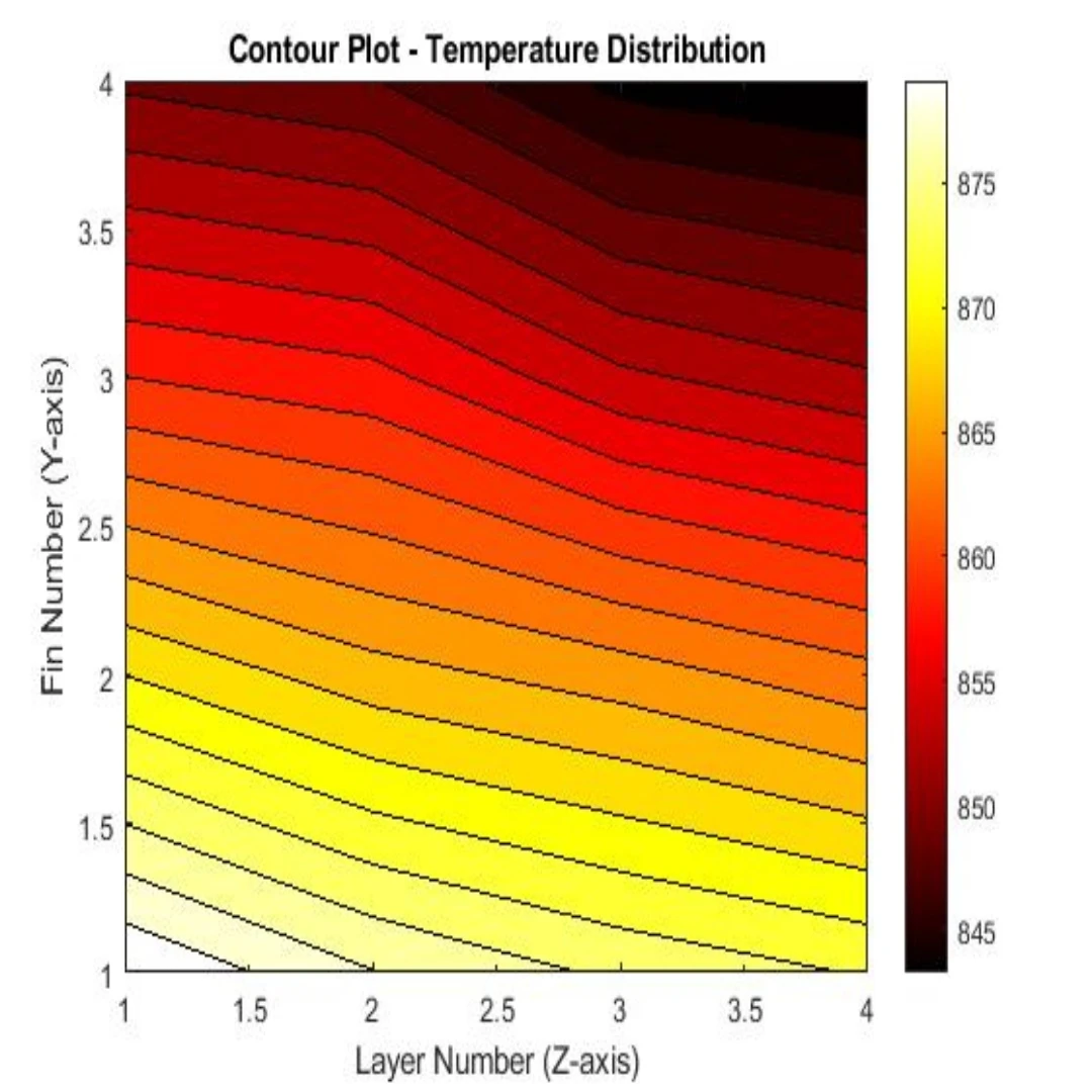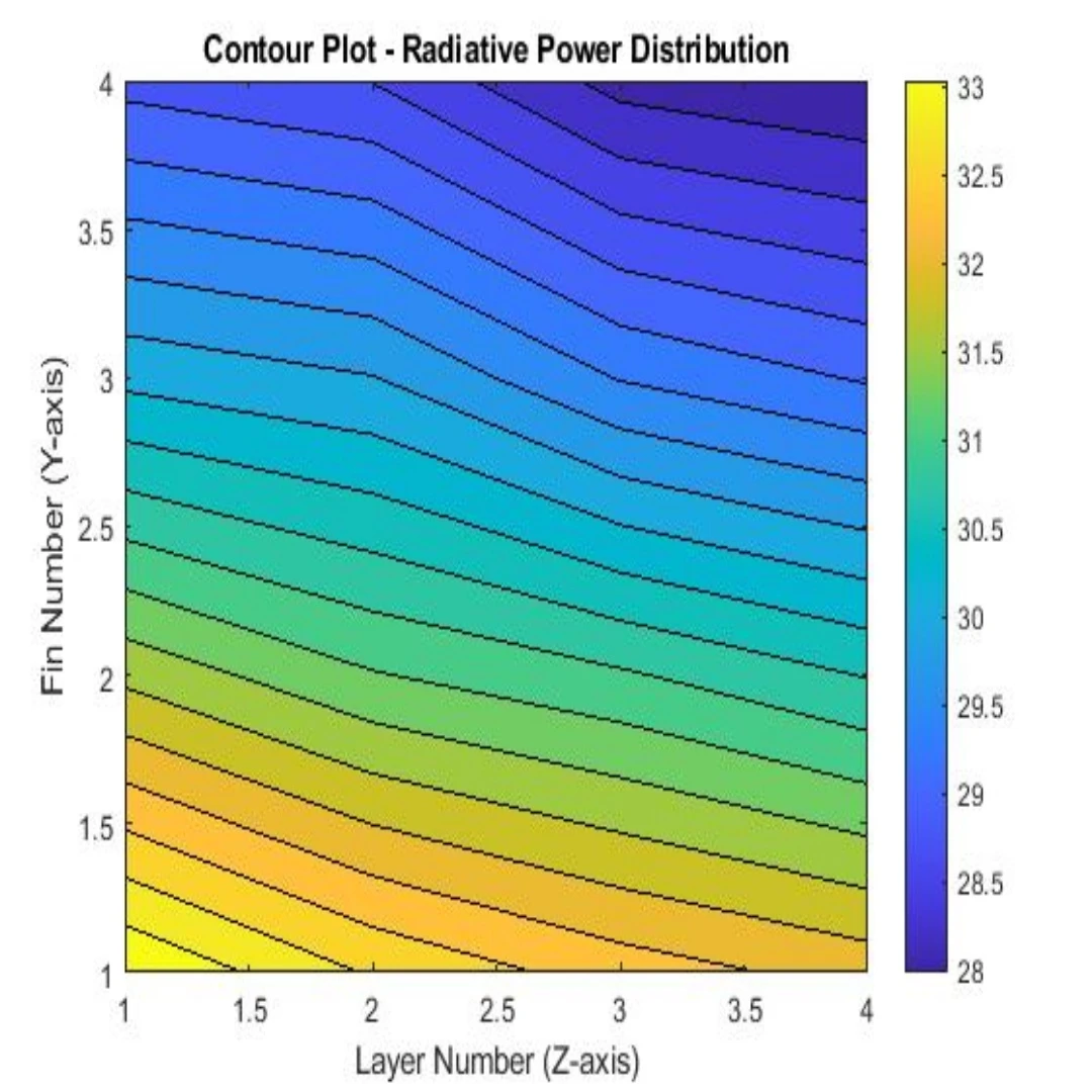 کدنویسی متلب انتقال حرارت تشعشعی و همرفتی بین فینها و کانتور دما و تابش آنها