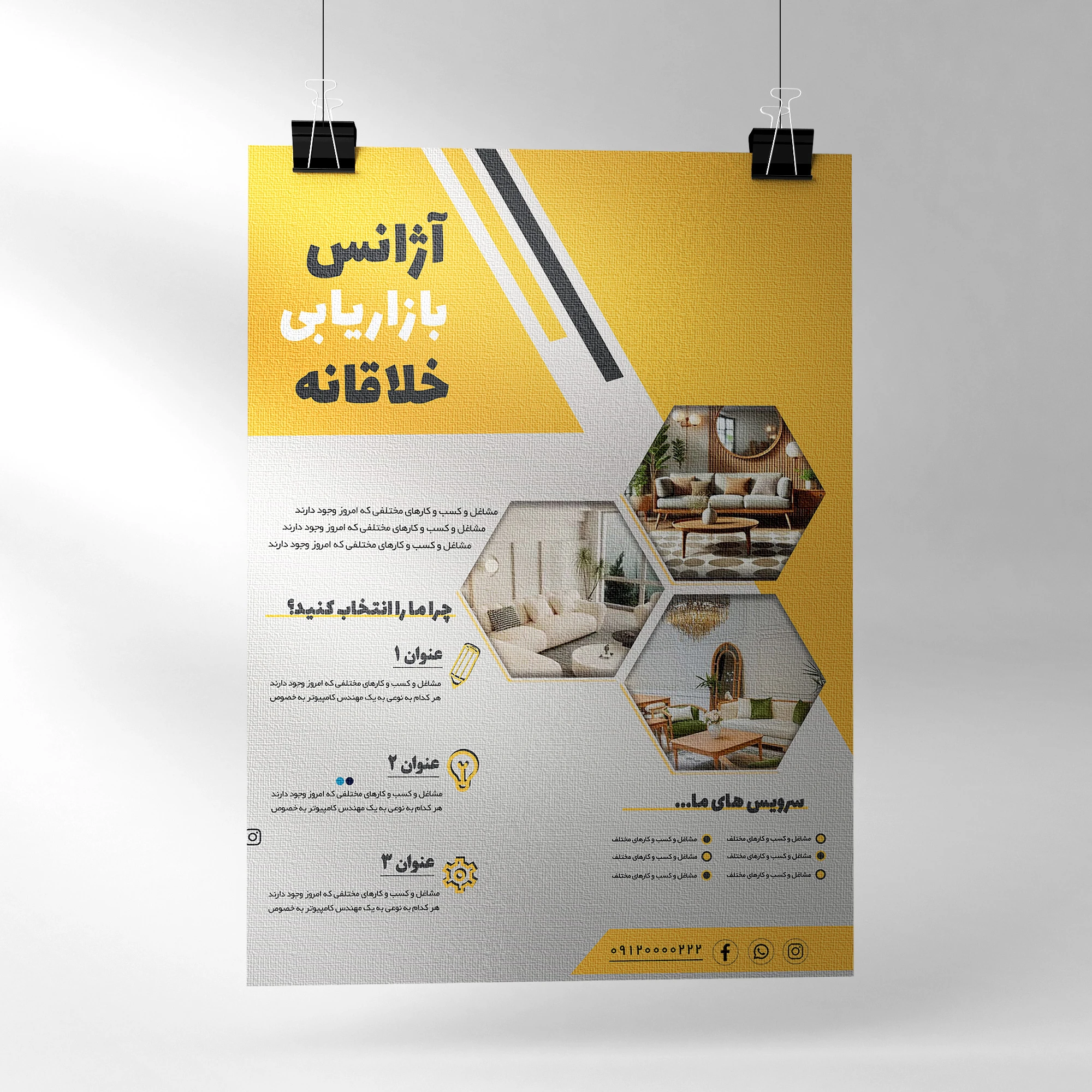 فایل لایه باز پوستر جهت استفاده برای تبلیغات کسب و کار شما که با قرار دادن تصاویر و متون خود بر روی آنها میتوانید طرحهایی زیبا برای چاپ و به اشتراک گذاری در سایت و شبکه های اجتماعی مختلف ایجاد کنید.