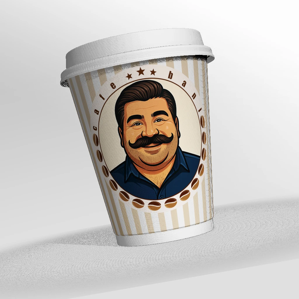 این لوگو ترکیبیه از شخصیتپردازی، حس خوب کافه، و المانهایی مثل دونههای قهوه که فضای برند رو کامل میکنه.