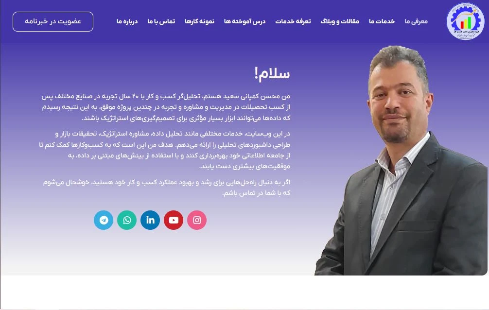 این سایت با هدف ارائه خذمات تحلیل کسب و کار برای مشتریان حقیقی و یا حقوقی معرفی شده است.
