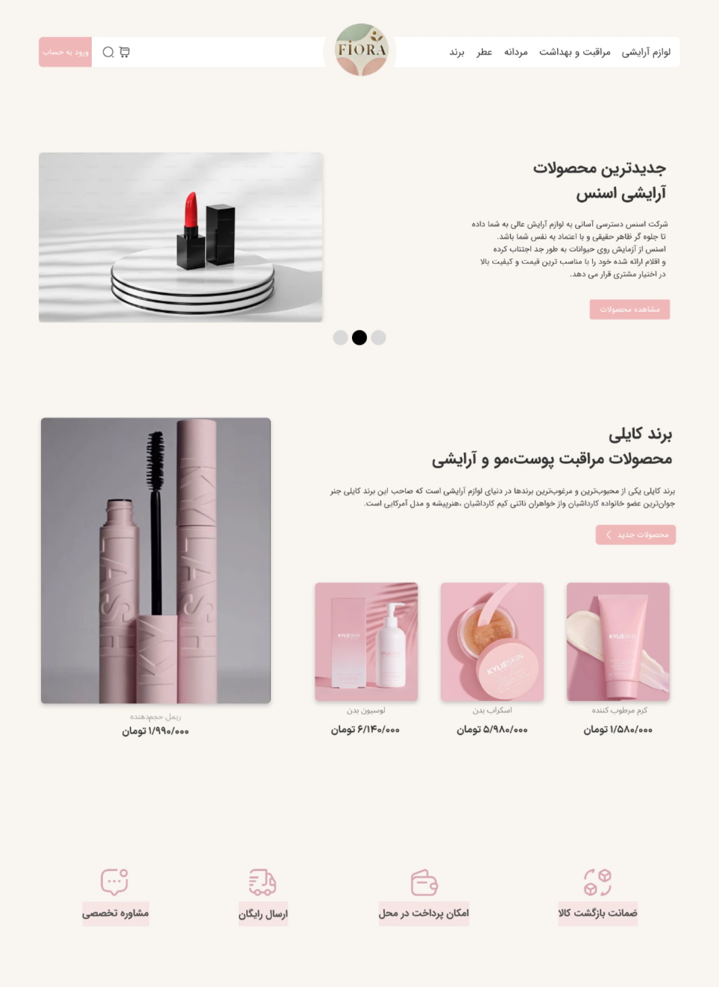 این طراحی یک صفحه اصلی از سایت لوازم آرایشی بود