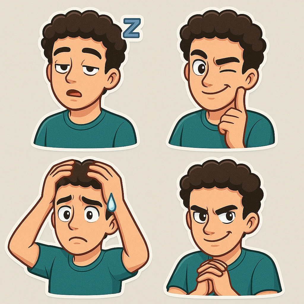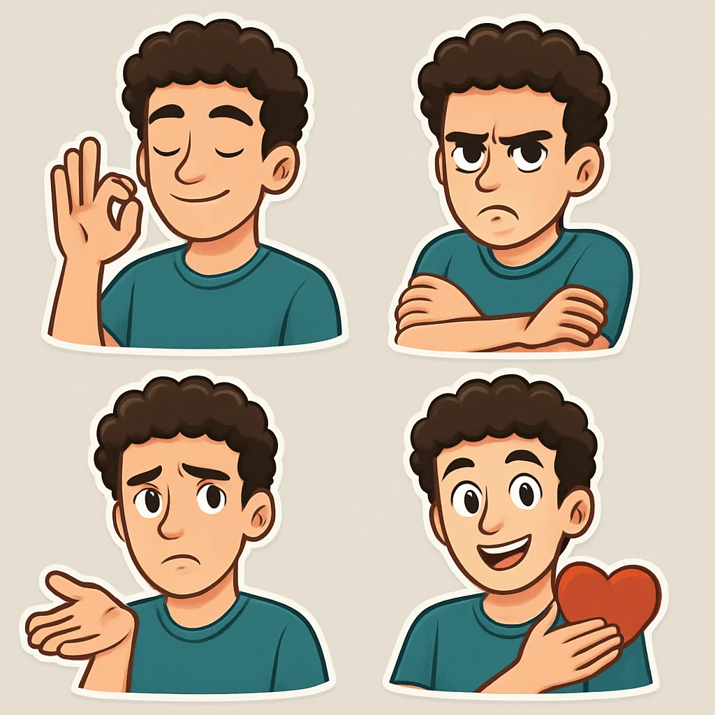 نمونه کار طراحی استیکر شبکه های اجتماعی از روی تصویر واقعی شخص در حالات و مکان های مختلف