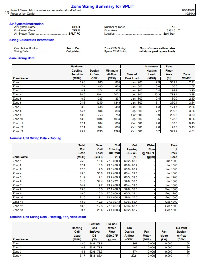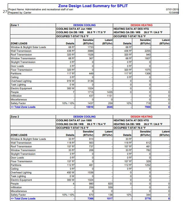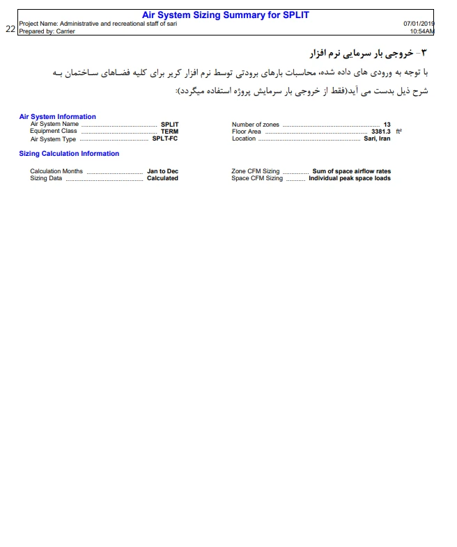 محاسبات بار سرمایش و گرمایش و میزان تلفات ساختمان برای انتخاب اصولی سیستم گرمایش و همچنین سرمایش در پروژه