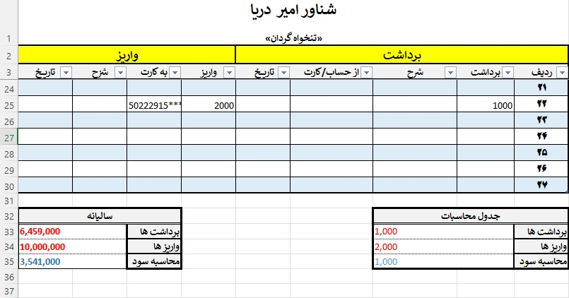 ثبت خرید و فروش،واریز و برداشت به همراه محاسبه سود و زیان روزانه و سالیانه