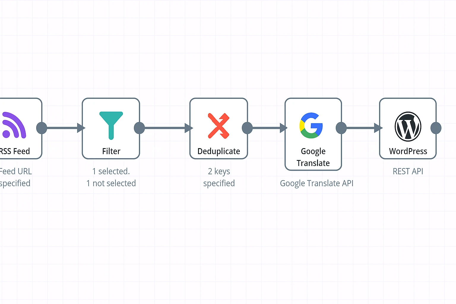 طراحی سیستم انتشار خودکار اخبار ترجمهشده از RSS به وردپرس با n8n
