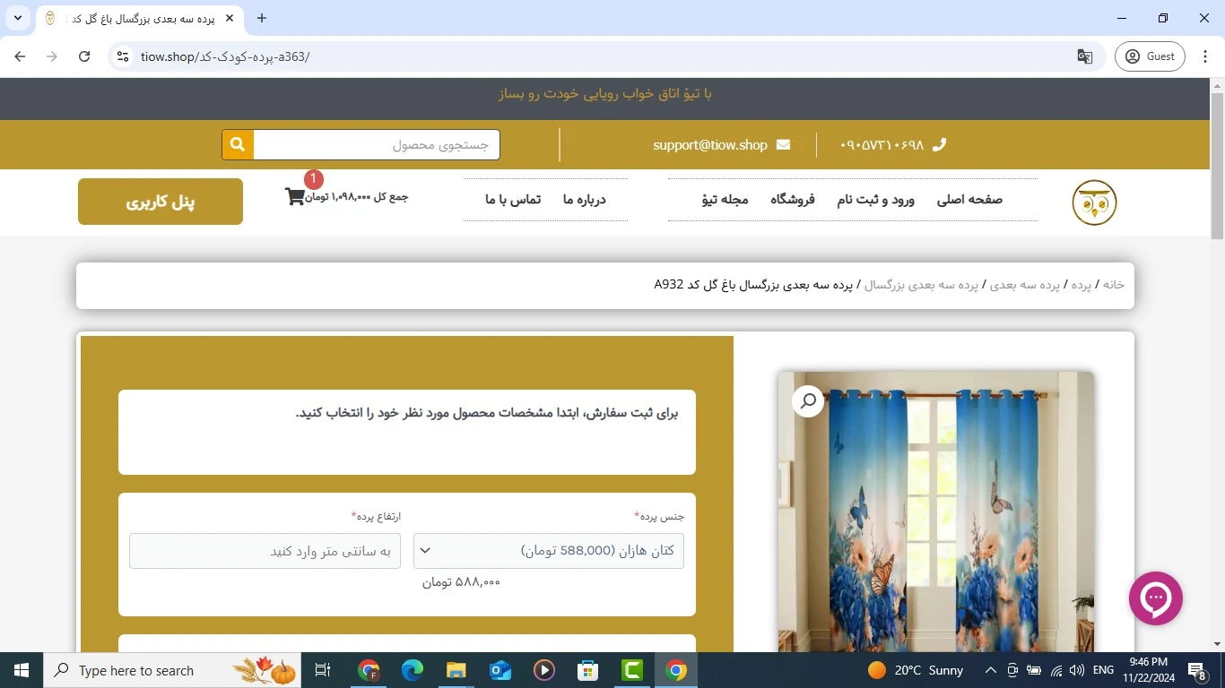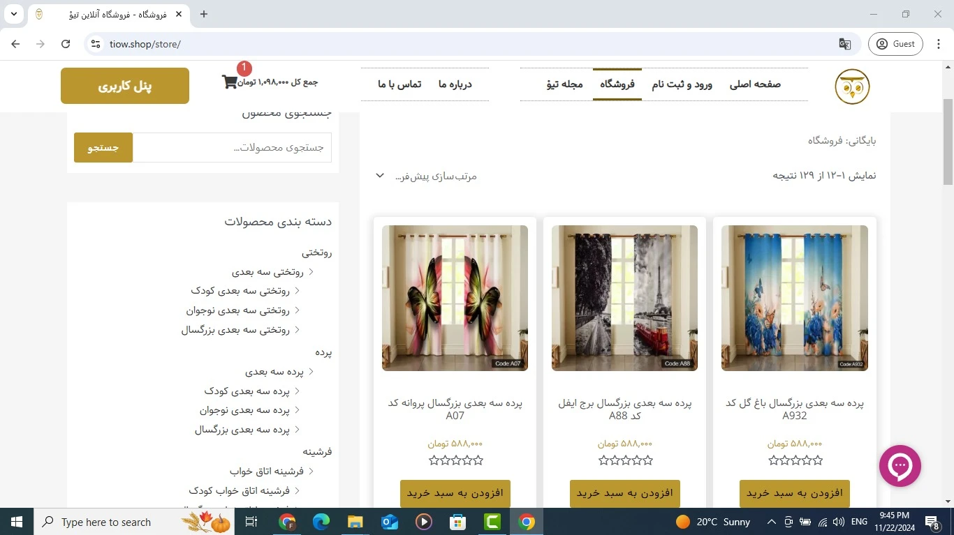 این پروژه یک فروشگاه آنلاین هست که محصولاتی از قبیل روتختی، پرده و ... عرضه می کنه. برای این وبسایت یک پالت رنگ بسیار جذاب، صفحه ورود و ثبت نام اختصاصی، پنل کاربری اختصاصی، درگاه پرداخت مستقیم، اینماد، صفحه محصول بسیار زیبا و کاربرپسند، دکمه چت مستقیم و بسیاری امکانات دیگه طراحی و کدنویسی شده تا کاربر در نهایت سهولت و بسیار سریع بتونه خرید خودش رو انجام بده