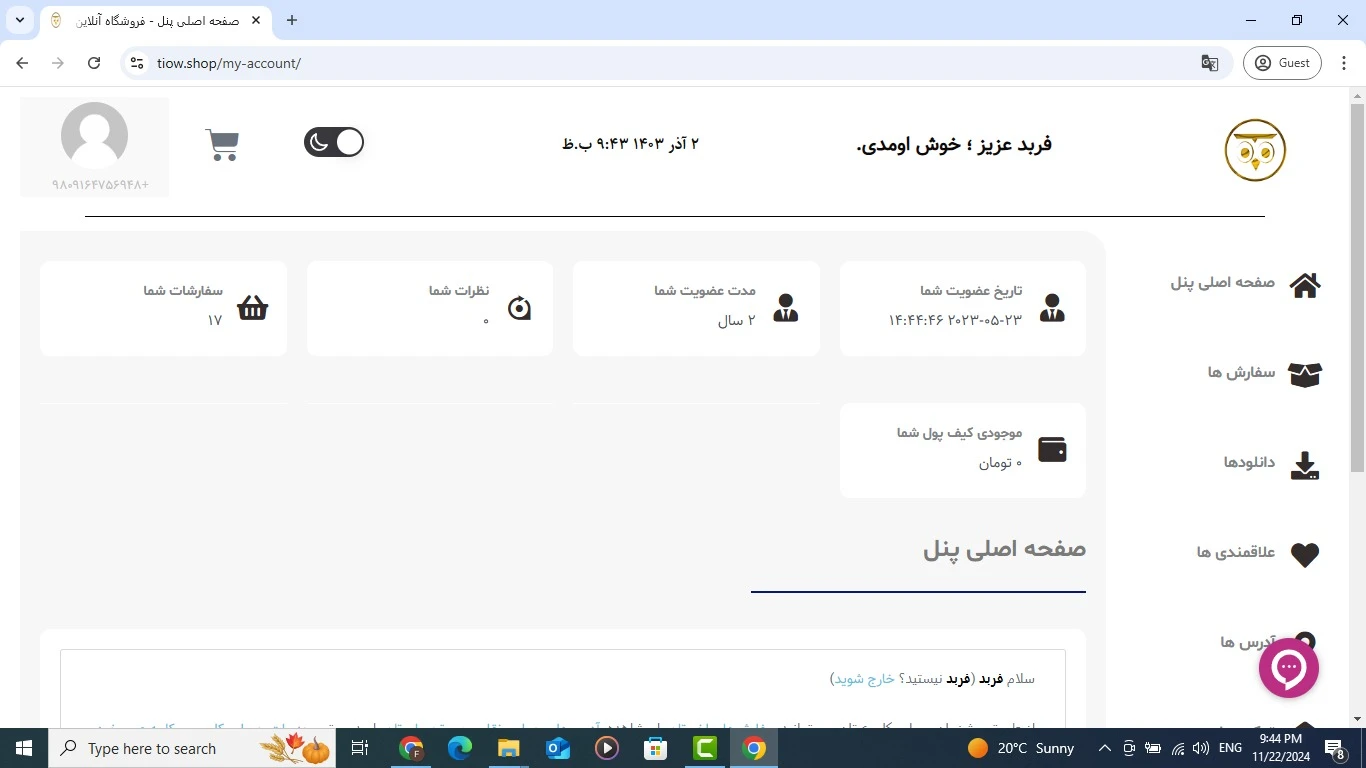 پروژه فروشگاه آنلاین با پنل کاربری اختصاصی