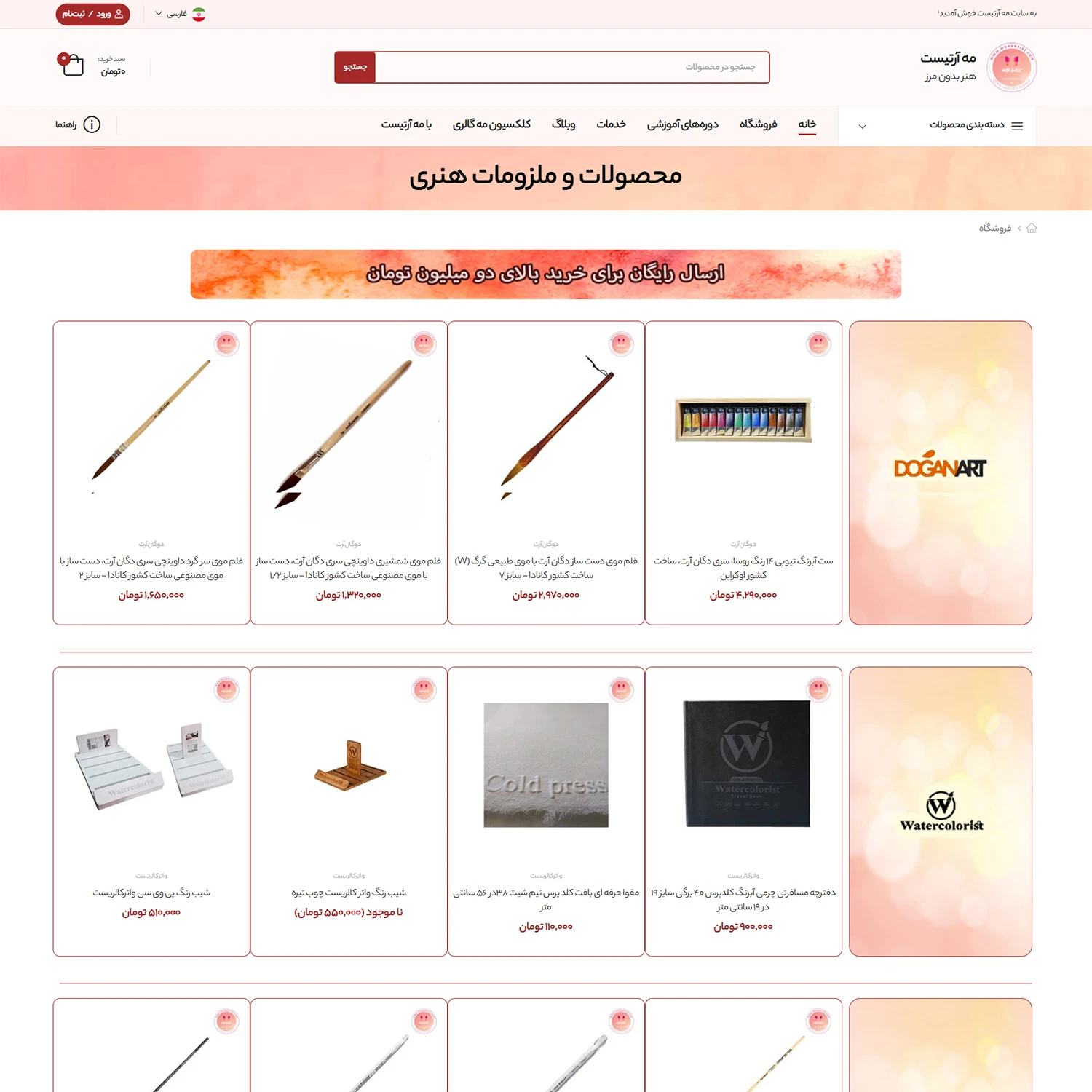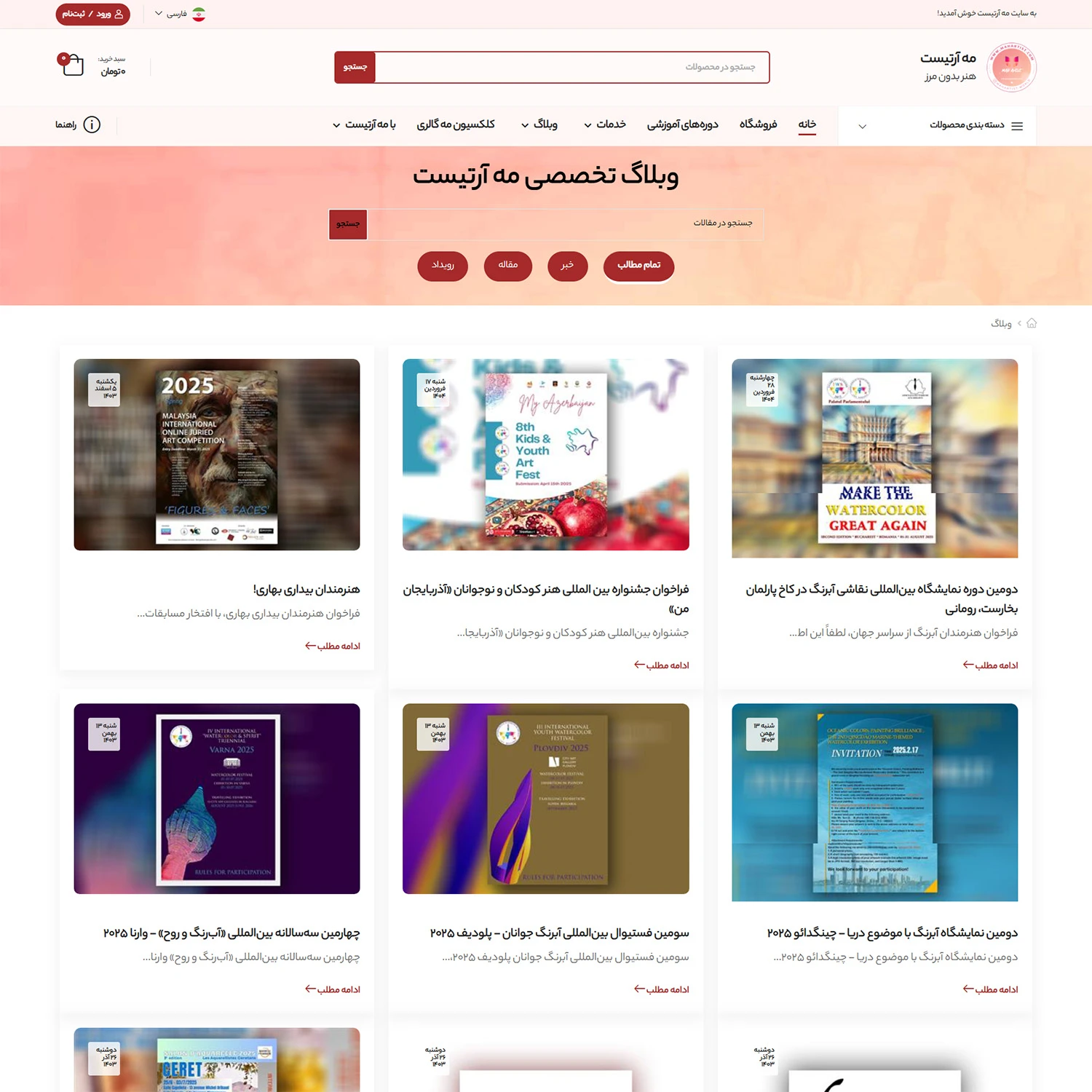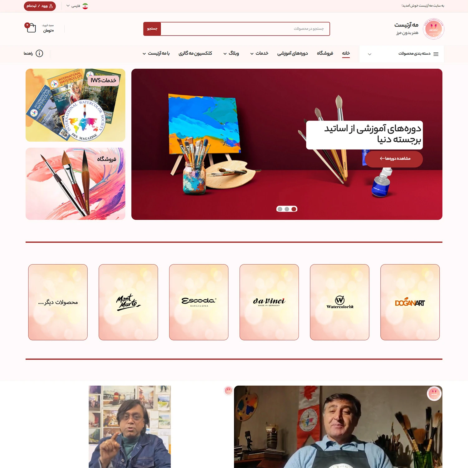 سایت مه آرتیست در ابتدا بهعنوان فروشگاه محصولات هنری راهاندازی شد، اما در ادامه و با توجه به توسعه نیازها و ایدههای مجموعه، بخشهایی مانند: دورههای آموزشی آنلاین، عضویت در جامعه بینالمللی آبرنگ، معرفی کتابها و مجلات هنری و... به آن افزوده گردید. این وبسایت اکنون بهصورت سهزبانه (فارسی، انگلیسی و ترکی) فعالیت میکند و بهعنوان یکی از پلتفرمهای معتبر و محبوب در حوزه آموزش و ترویج هنرهای تجسمی شناخته میشود.