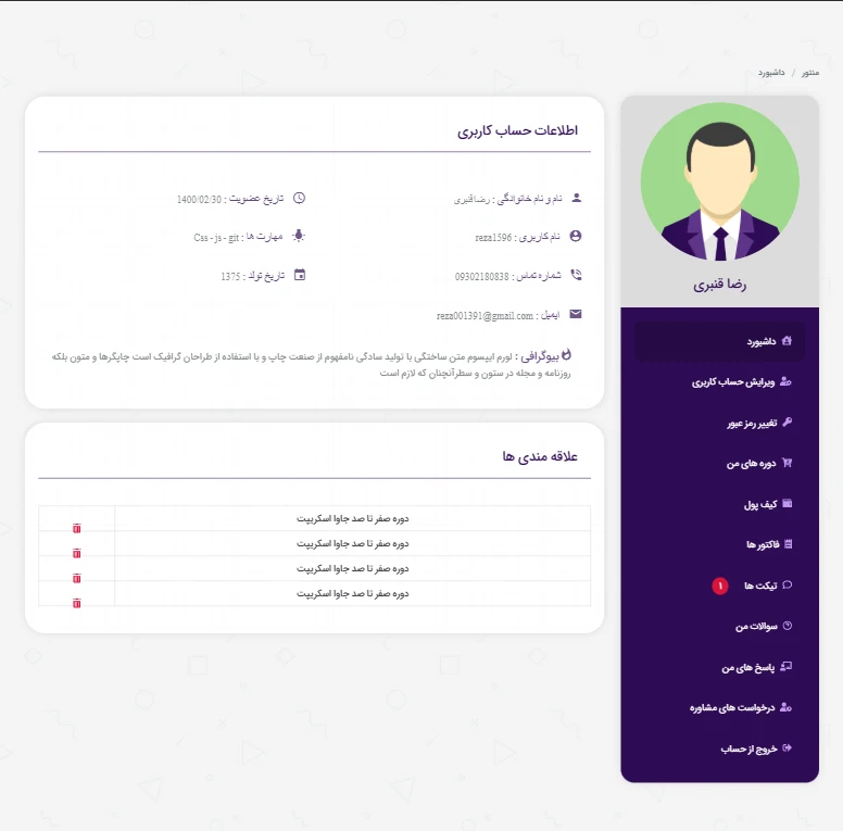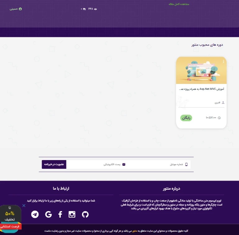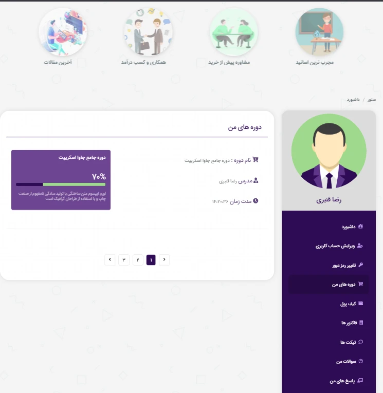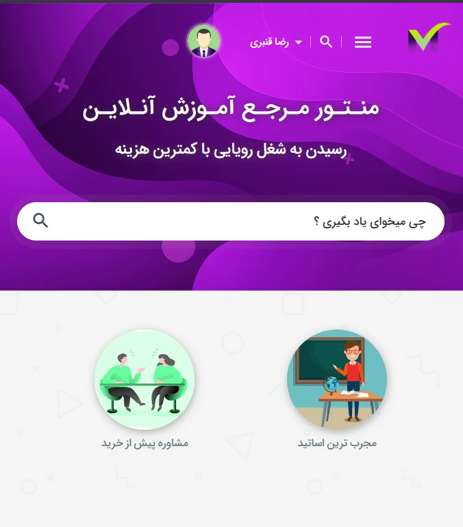 نمونه سایت طراحی شده برای سایت آموزشی و فروش دوره و منتورینگ