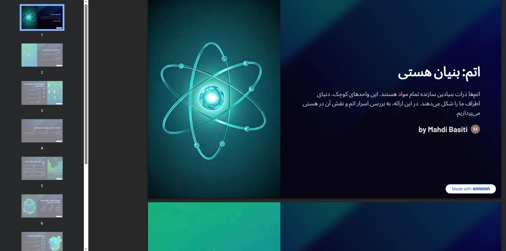 پاور پوینت در مورد اتم و بنیان هستی.سریع و باکیفیت