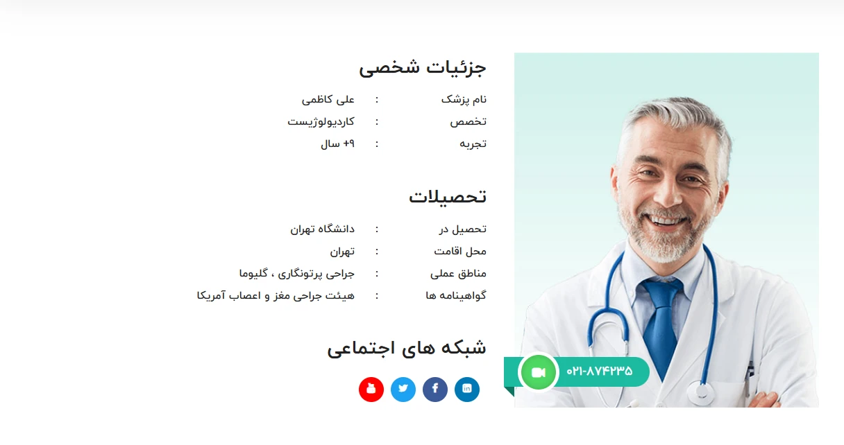 ✔️ نمایش اطلاعات پزشک، تخصص، ساعات حضور، بیمههای طرف قرارداد