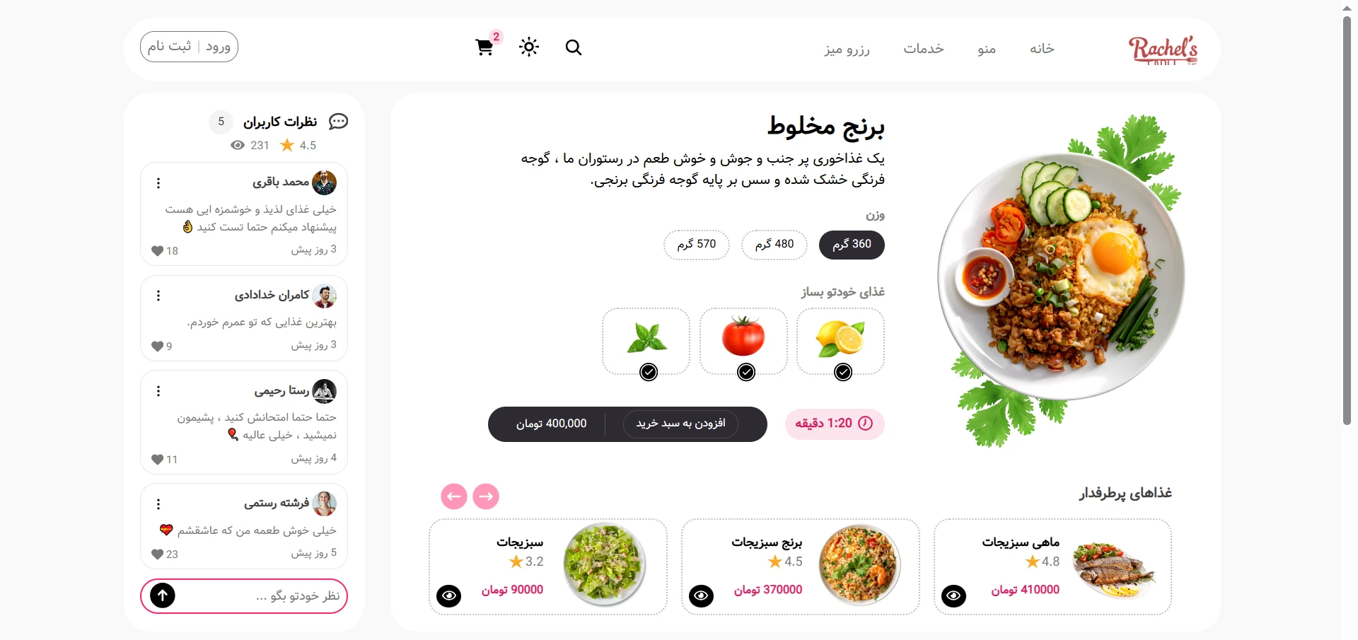 سایت رستوران (ثبت سفارش و رزرو میز به صورت آنلاین)