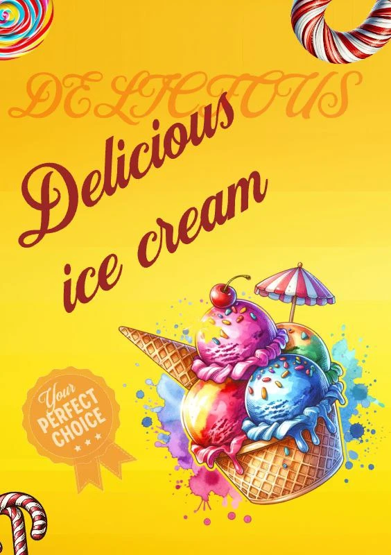 طراحی یک پوستر شیک برای بستنی فروشی به نام delicious